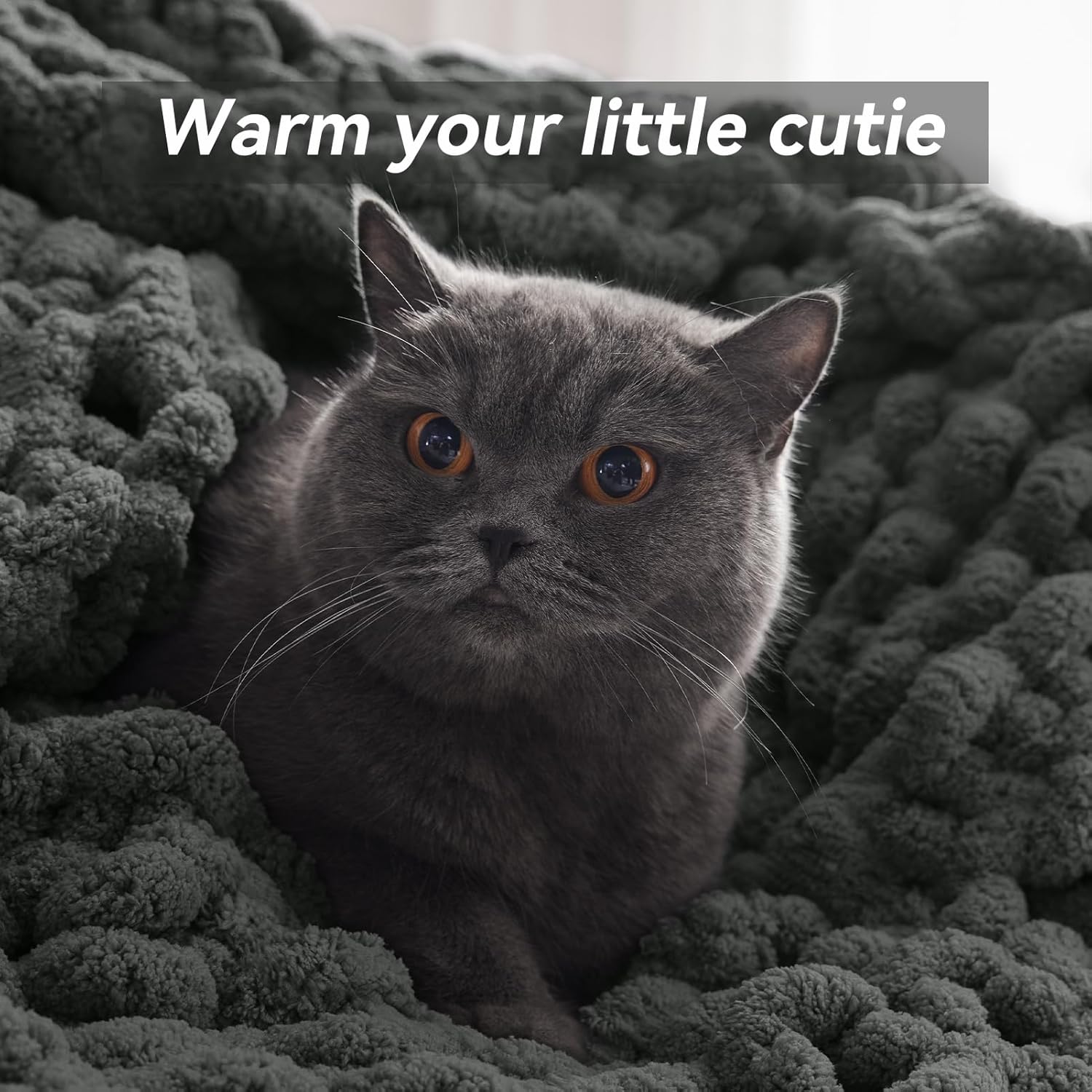 Chunky Knit Throw Blanket, 30''*40'' Knitted Throw Chenille Yarn for Bed Couch, Handmade Dark Grey Crochet Big Thick Blanket, Machine Washable Cute Comfy Blanket for Home Decor
