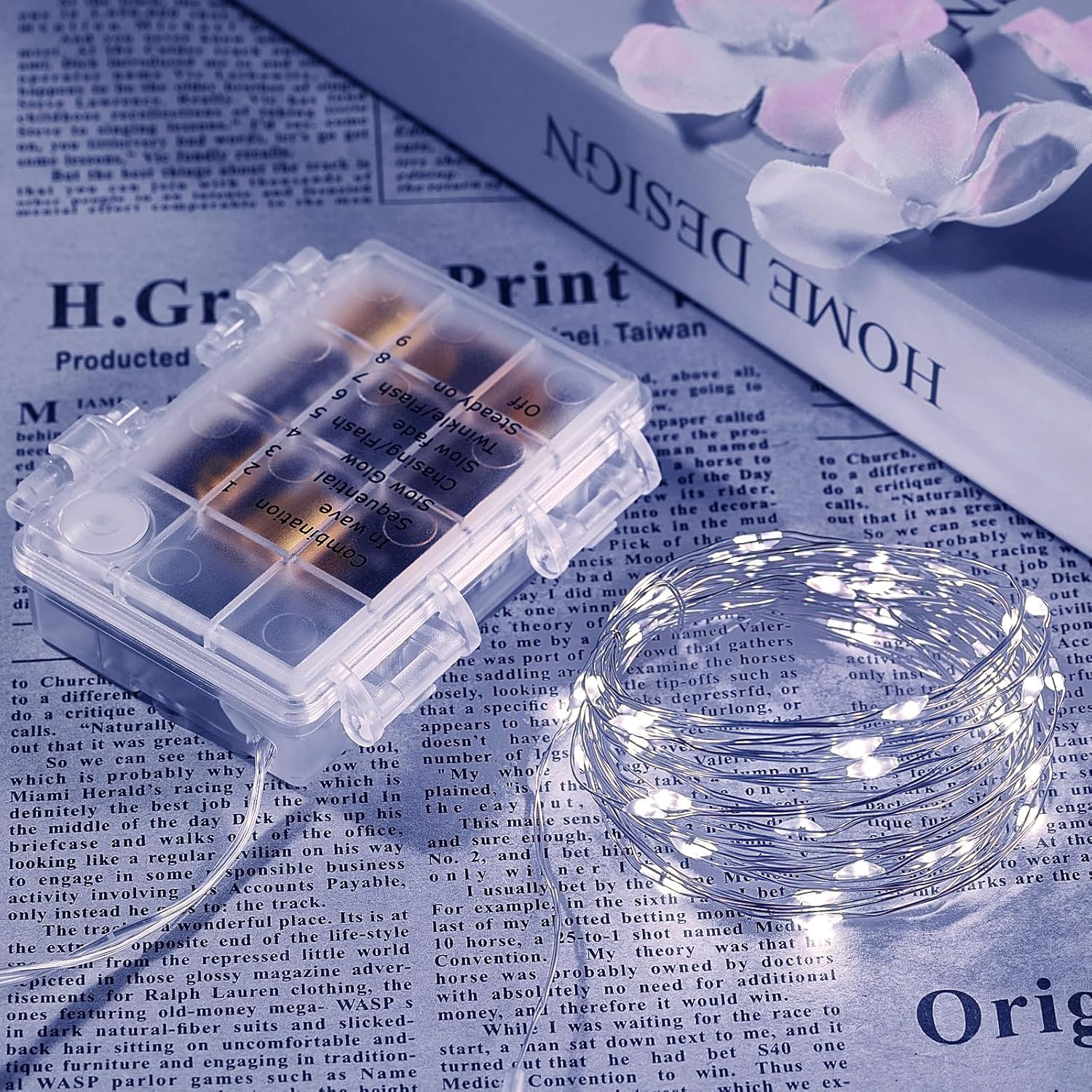 2 Pack 32.8 Ft. Battery Operated Outdoor String Lights with Remote & Timer, LED Cool Whit Fairy Lights, Waterproof Twinkle Lights for Bedroom, Dorm, Mason Jar, Wedding, Party, Christmas