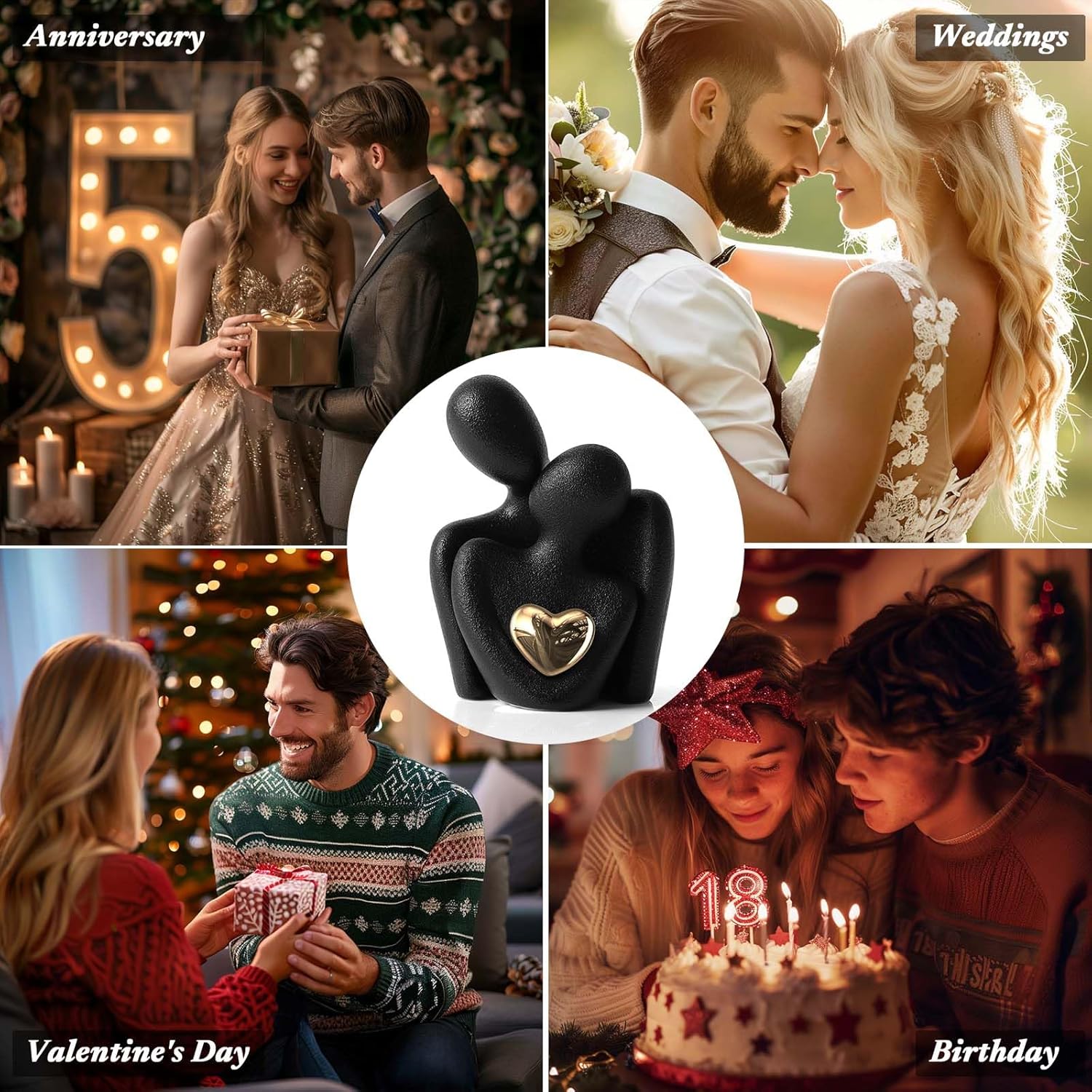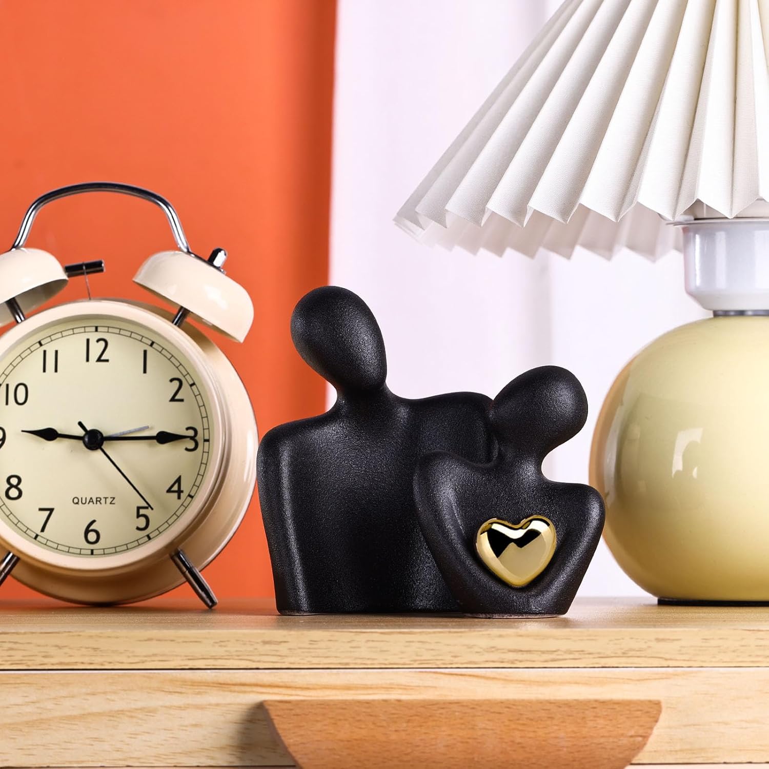 - Couples Bedroom Decor: This ceramic 'Hugging Couple Statue' embodies love and intimacy as the couple figurine shares a gaze, with a shining gold heart at the center, symbolizing a bright and precious bond. It's a mini yet impactful piece that brings a symbolic sparkle to any room, from the living room to the love office decor.