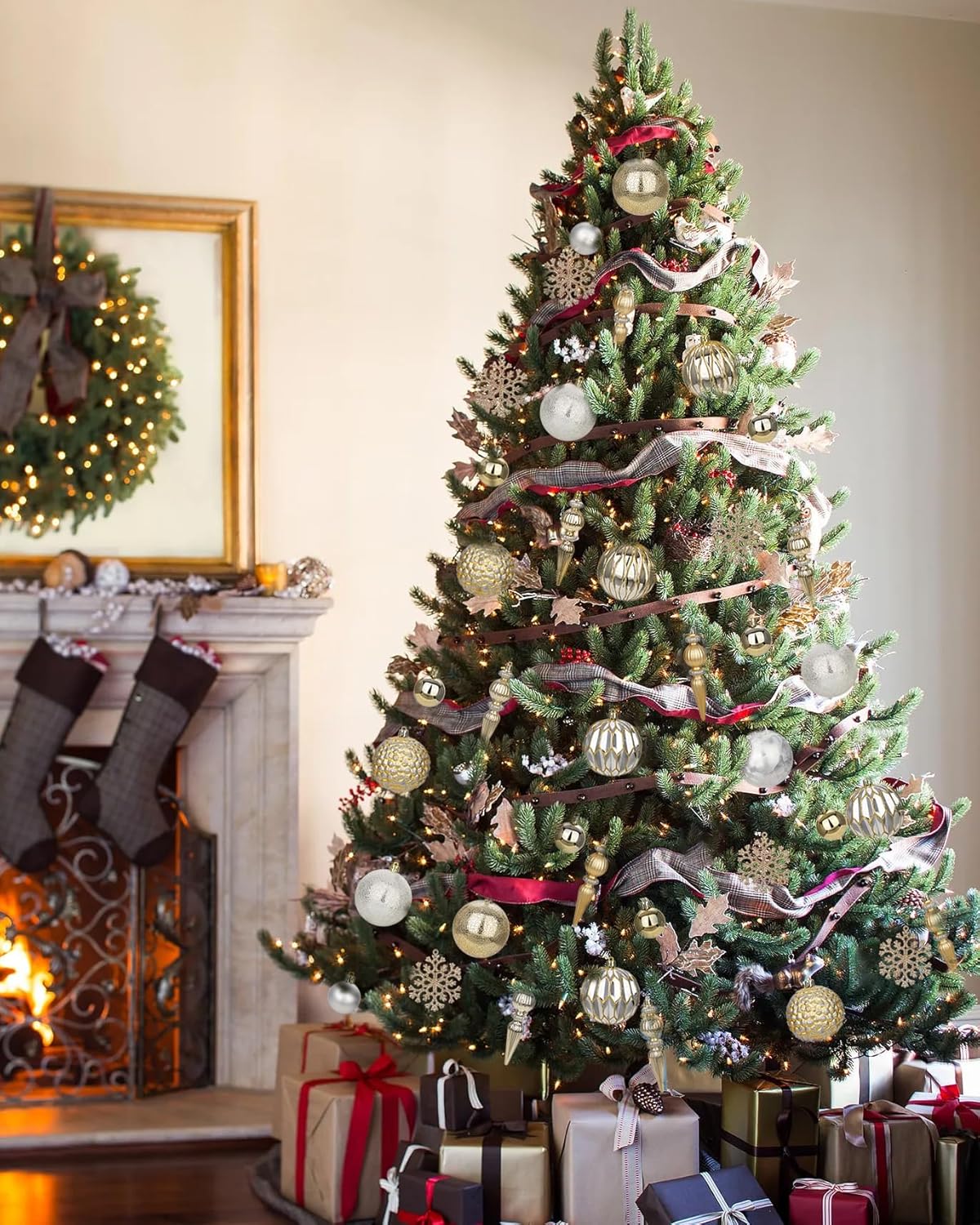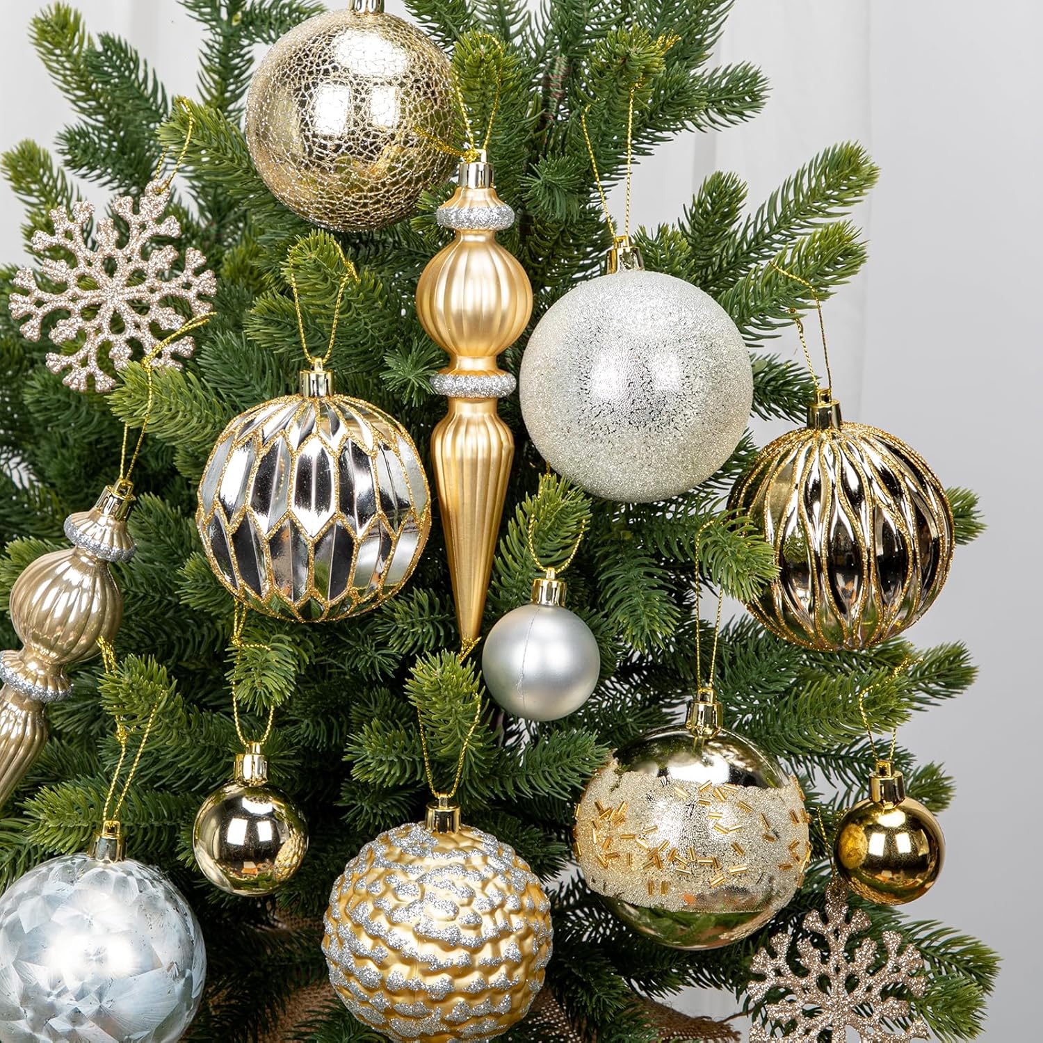 - COMPLETE 92-PIECE SET – Each Christmas ornament set includes 92 carefully selected pieces in various sizes and designs, including classic round balls, intricate finials, glittery snowflakes, and mini baubles. This complete collection allows you to decorate your entire Christmas tree with a perfectly coordinated look