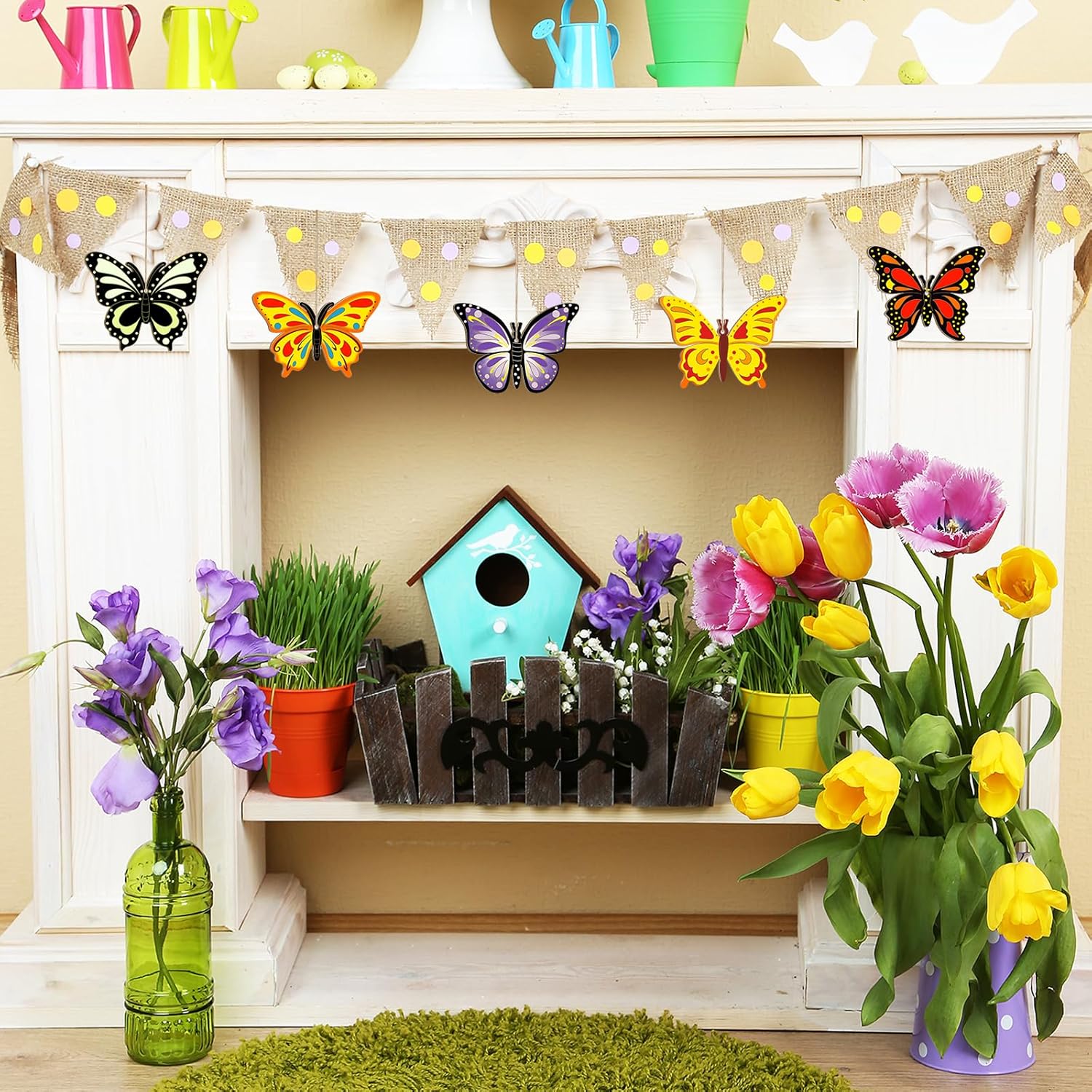 80PCS Wooden Spring Ornaments to Paint Butterfly Cutouts, 8 Styles DIY Blank Unfinished Wood Butterfly Cutouts Ornament for Home Crafts Hanging Decorations