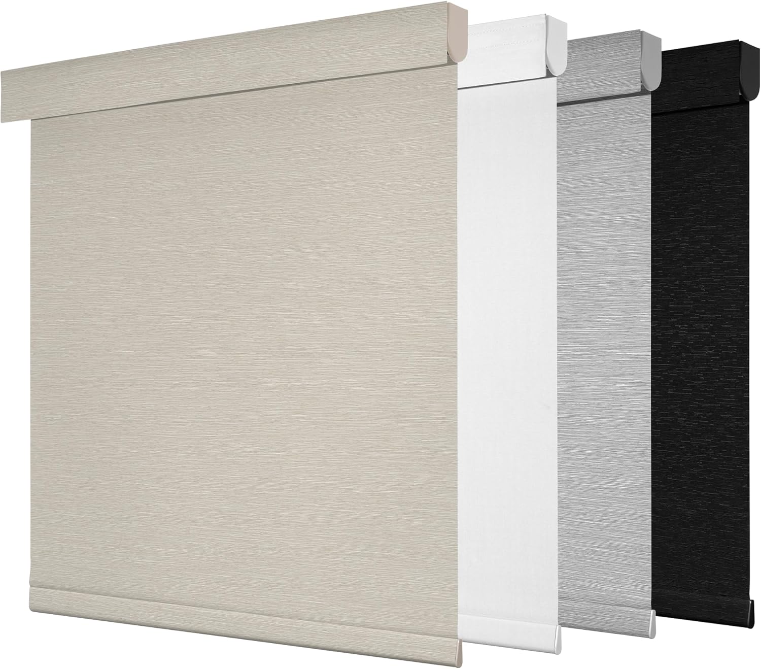 Boolegon Blackout Roller Shades for Windows, Cordless Jacquard Fabric-Matched Roller Blinds, Easy to Install Privacy UV Protection Blinds for Home, Office, Blackout Beige, Custom Size