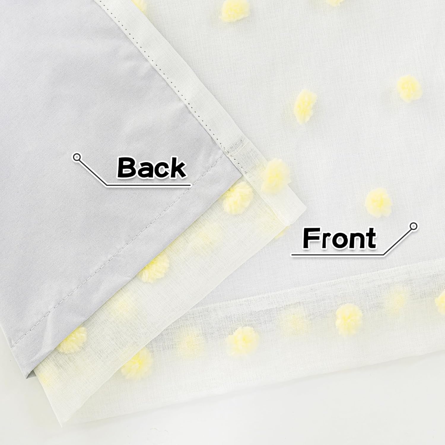 - Unique Design:These cute pom poms combine bohemian elements with modern style. The white sheer curtain is embellished with cute pom poms, adding interest, glamour and a beautiful look to your windows.
