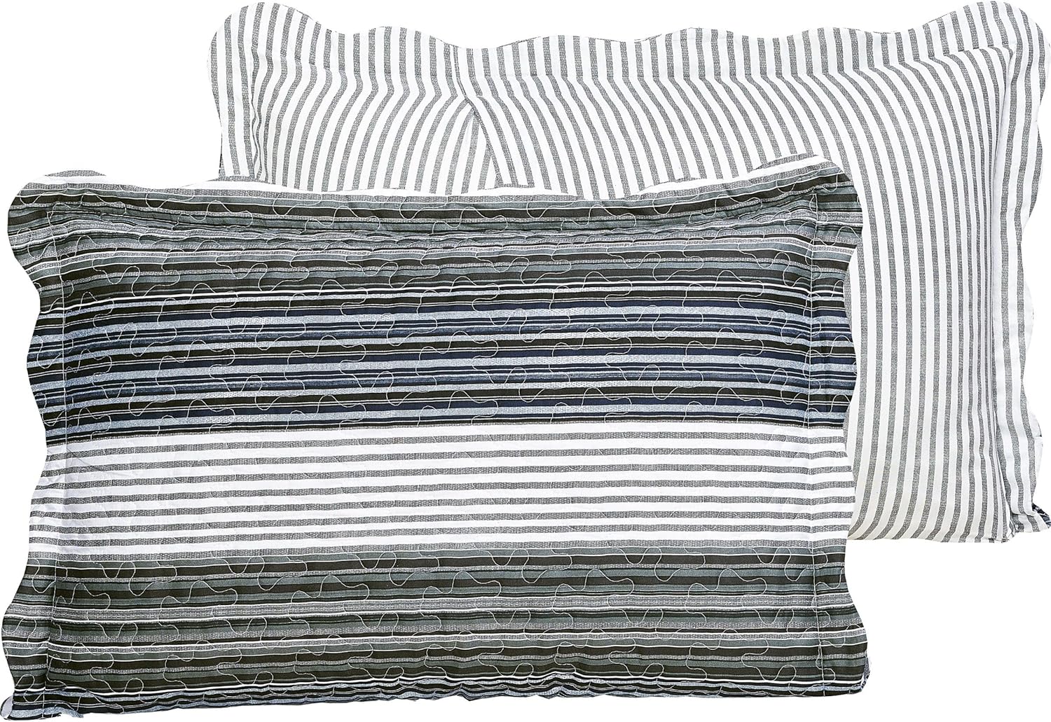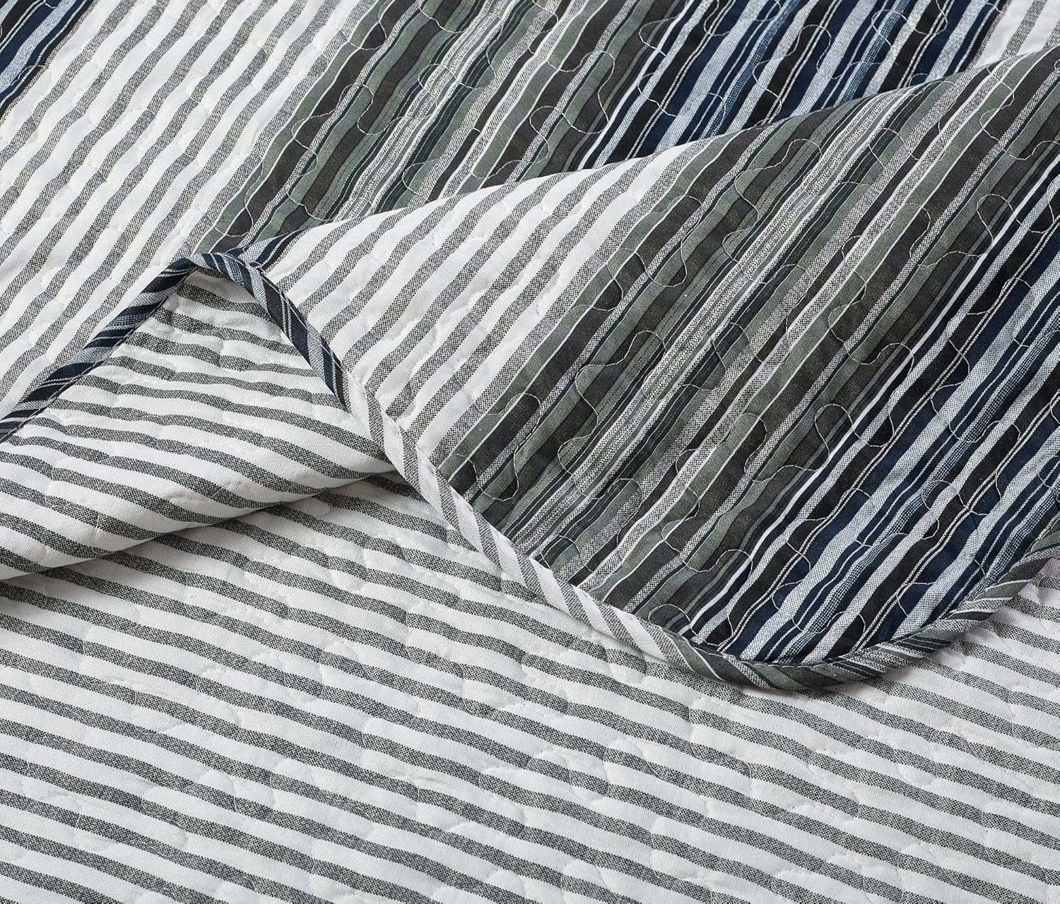 Brilliant Sunshine Multi Grey Stripes Patchwork, 3-Piece Quilt Set with 2 Shams, Reversible Bedspread, Soft Lightweight Coverlet, All-Season, Full/Queen, Multi Grey