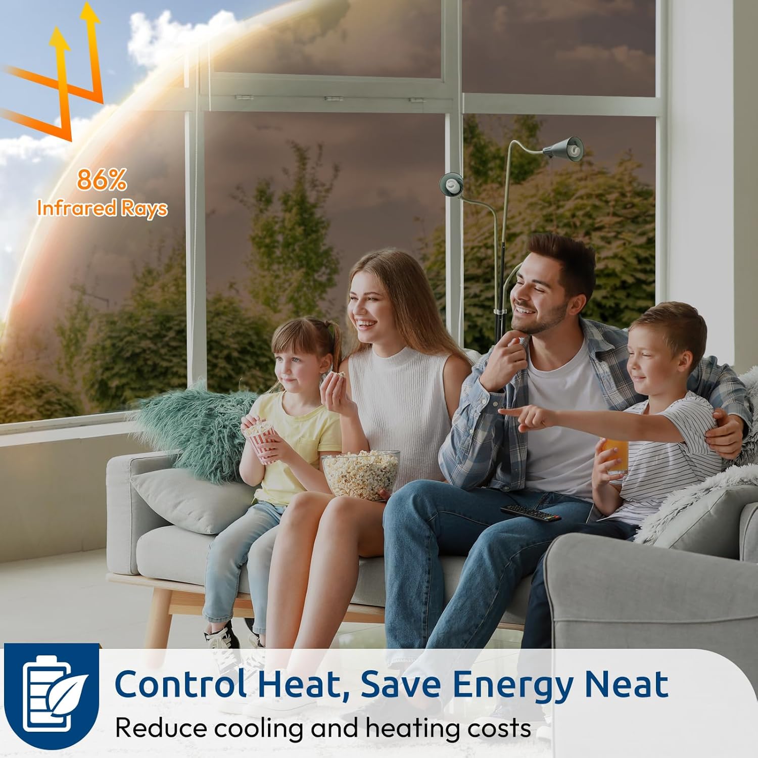 - Heat Control, Energy Saving: This heat control window film reflects 86% of infrared rays, reducing heat transmission through your glass. This home window tint is an economical way to stay cool in summer and retain heat in winter, helping you save money by lowering energy bills. Note: Do not apply on double-pane windows exposed to prolonged sunlight