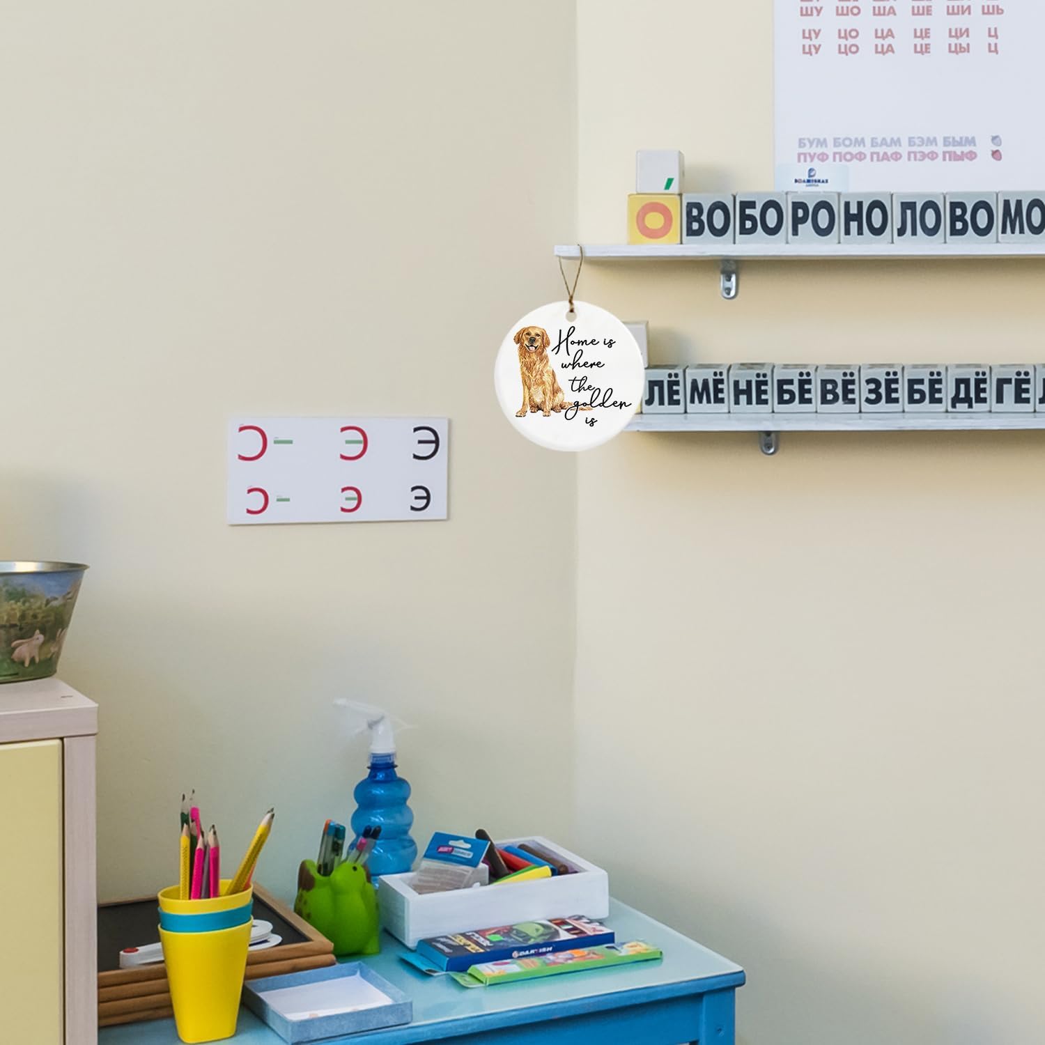 Golden Retriever Decor Gifts Ornament, Home is Where The Golden is Ceramic Christmas Ornament Keepsake Sign Plaque