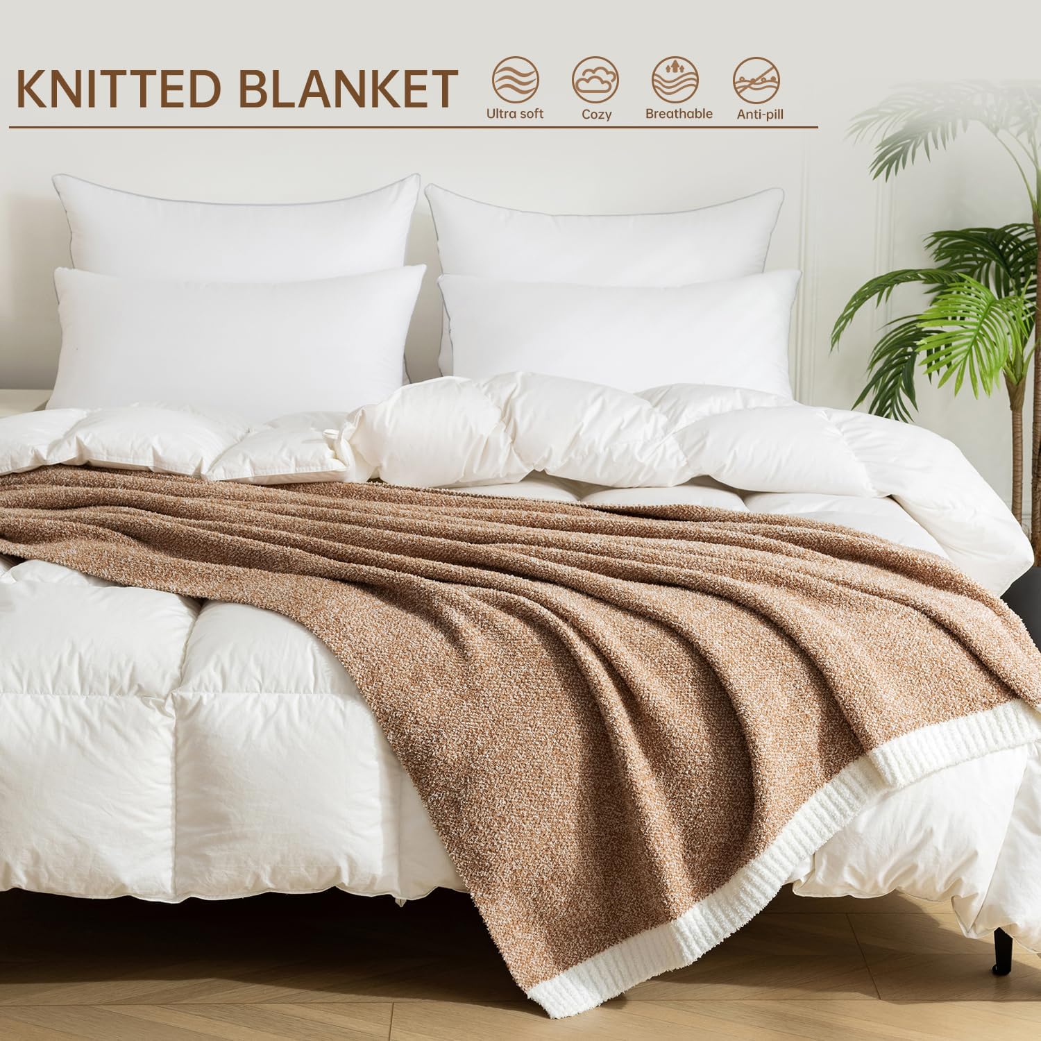 LURKA Fine Knit Throw Blanket - Super Soft Breathable Lightweight Blanket for Couch Bed Sofa (Camel, Throw(50"x 60"))