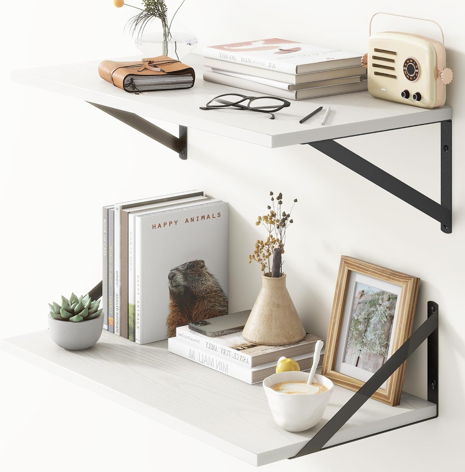 - ăEasy to AssembleăThese shelves come with all mounting hardware and instructions. You can install them in less than 15 minutes. If you have any questions about our products, please feel free to contact us and we will try our best to solve them for you!