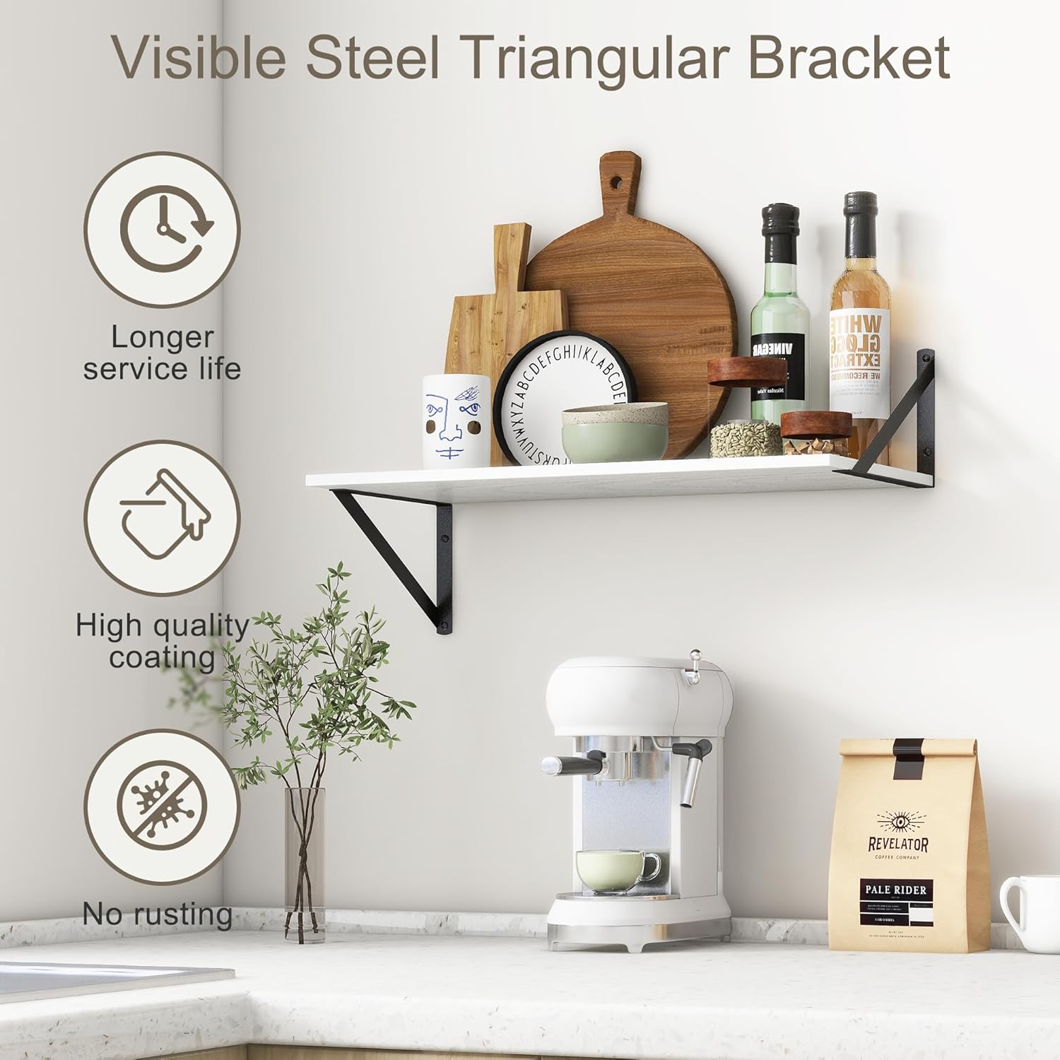- ăFARMHOUSE RUSTIC WALL SHELFăThese floating shelves are made of premium engineered wood board and visible triangular bracket. The rustic wooden grain surface add character and warmth to any modern or traditional interior with these deep floating shelves, contrast shelves at staggering heights on the wall or mount side-by-side or in the corner for a clean streamlined look.