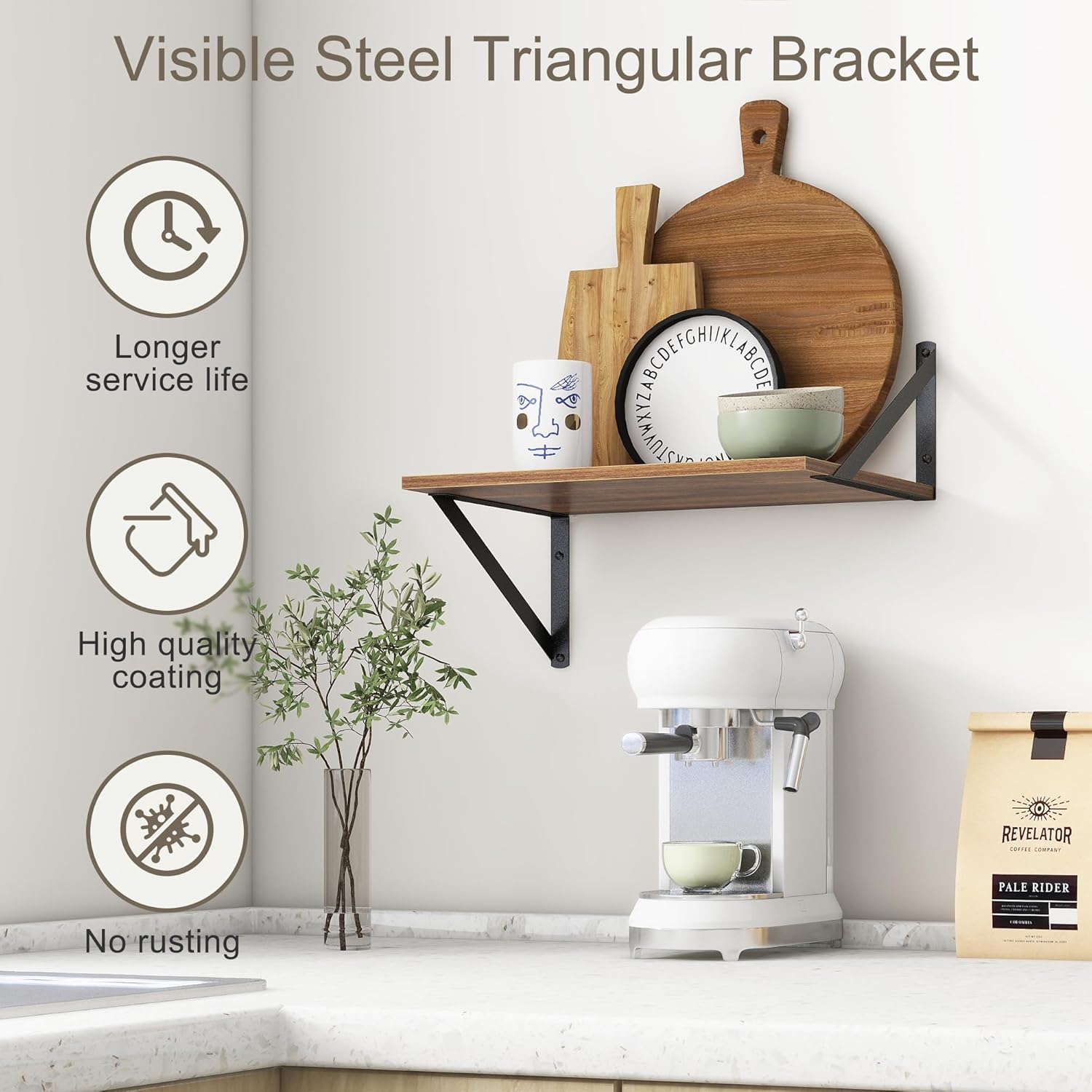 - ăFARMHOUSE RUSTIC WALL SHELFăThese floating shelves are made of premium engineered wood board and visible triangular bracket. The rustic wooden grain surface add character and warmth to any modern or traditional interior with these deep floating shelves, contrast shelves at staggering heights on the wall or mount side-by-side or in the corner for a clean streamlined look.