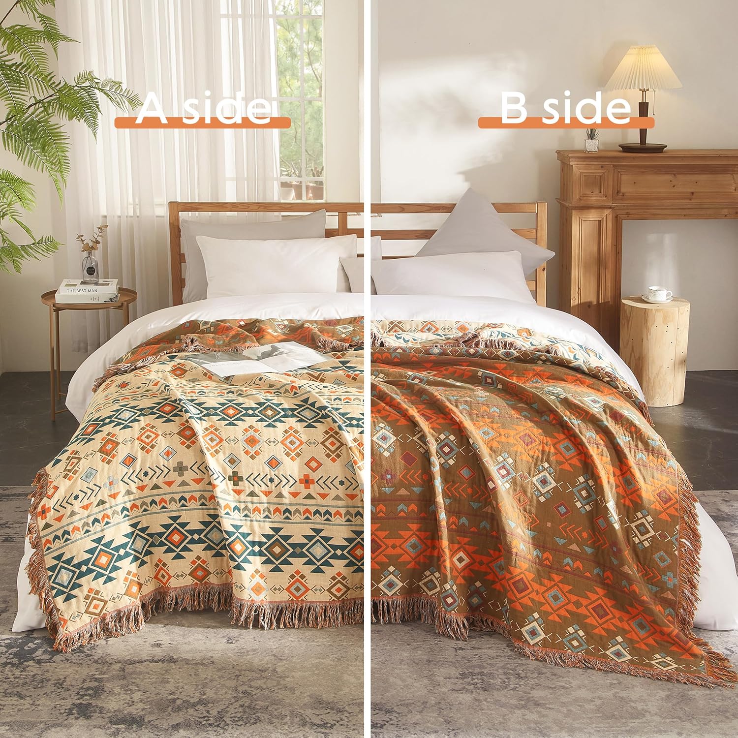 - Boho Chic Versatility: Experience the versatility of our boho-style cotton throw blankets that seamlessly transform from bedspreads to chic sofa covers. Ideal for any setting, from the bedroom to the living room, these blankets add a touch of rustic elegance. Whether as a fall throw, couch blanket, travel blanket, bedspread, Cloverlet or light quilt, they effortlessly combine warmth with style.