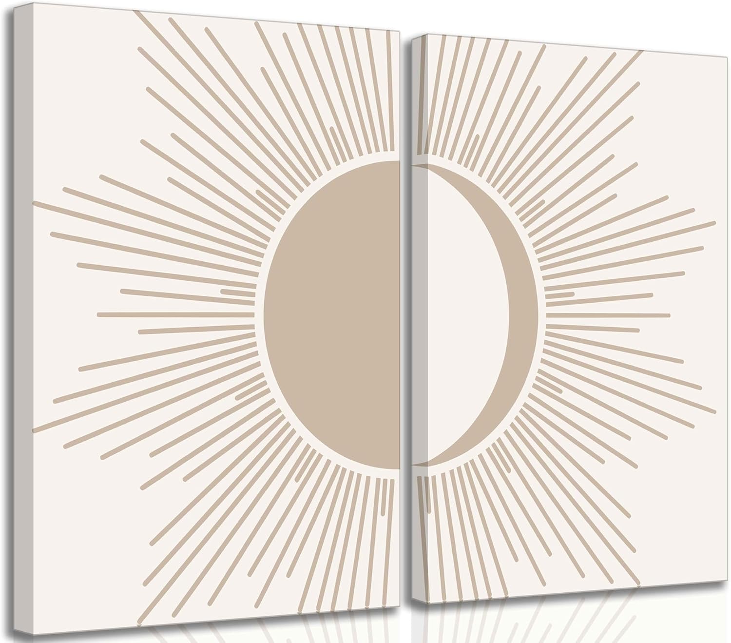 2Pcs Minimalism Boho Canvas Wall art Mid Century Modern Beige and White Sun and Moon Geometric Abstract Painting Pictures Wall Decor Posters Print Artwork for Bedroom Living Room Decoration