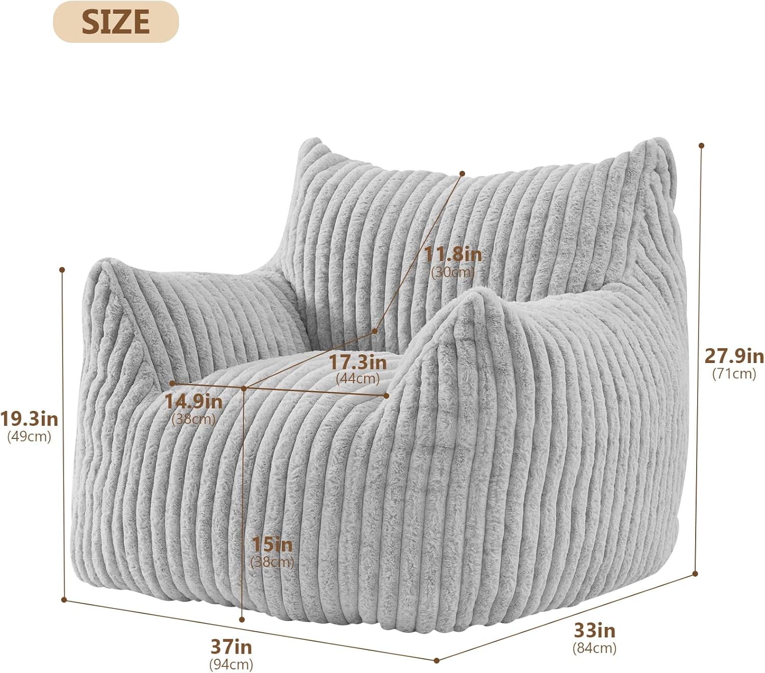 Giant Bean Bag Chairs for Adults Teens, Large Bean Bag Sofa Chairs with Filling Comfy Fuzzy BeanBag Chair with Armrests for Bedroom Living Room Reading