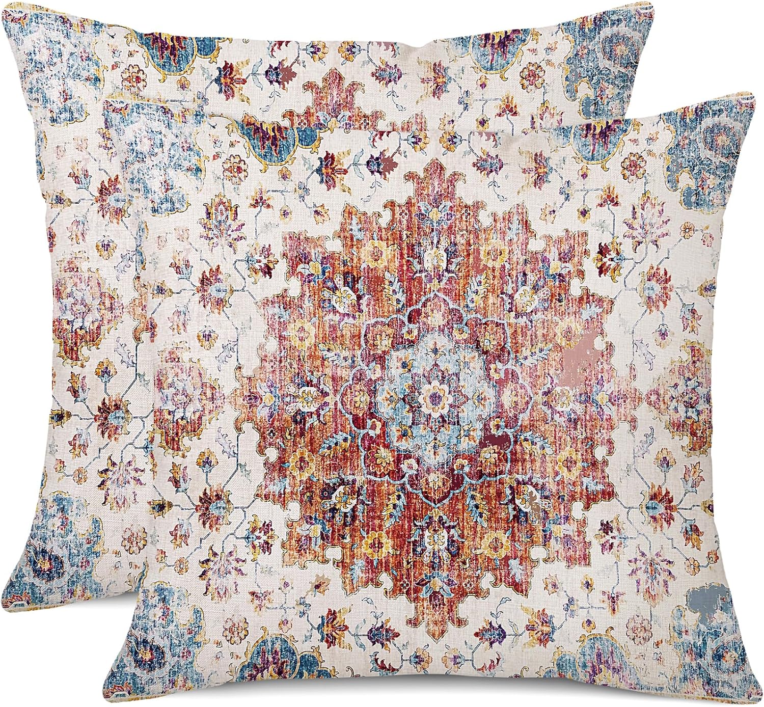 - 【Unique Design】:Unique bohemian carpet vintage floral pillowcase,The printed pattern is only available on front side, back is linen beige color without any printing. It can help you quickly change decorations, refresh your living space, and mix and match with other decorative pillows or holiday decorations. It's also a nice gift for family and friends