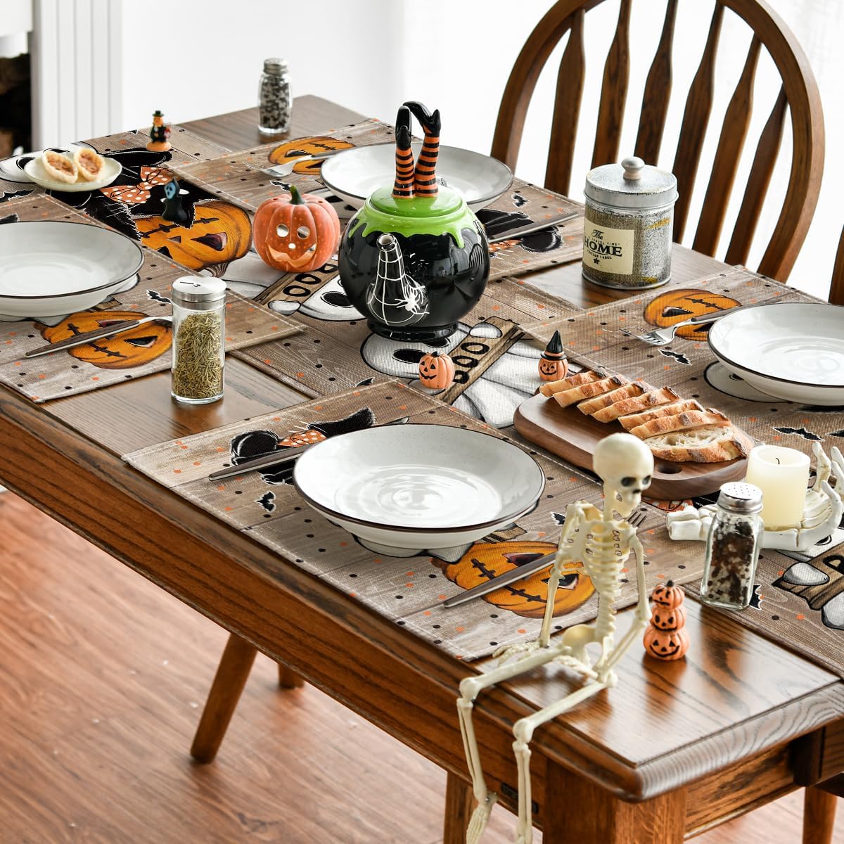 Artoid Mode Wood Polka Dot Ghost Cat Boo Halloween Placemats Set of 4, 12x18 Inch Seasonal Table Mats for Party Kitchen Dining Decoration
