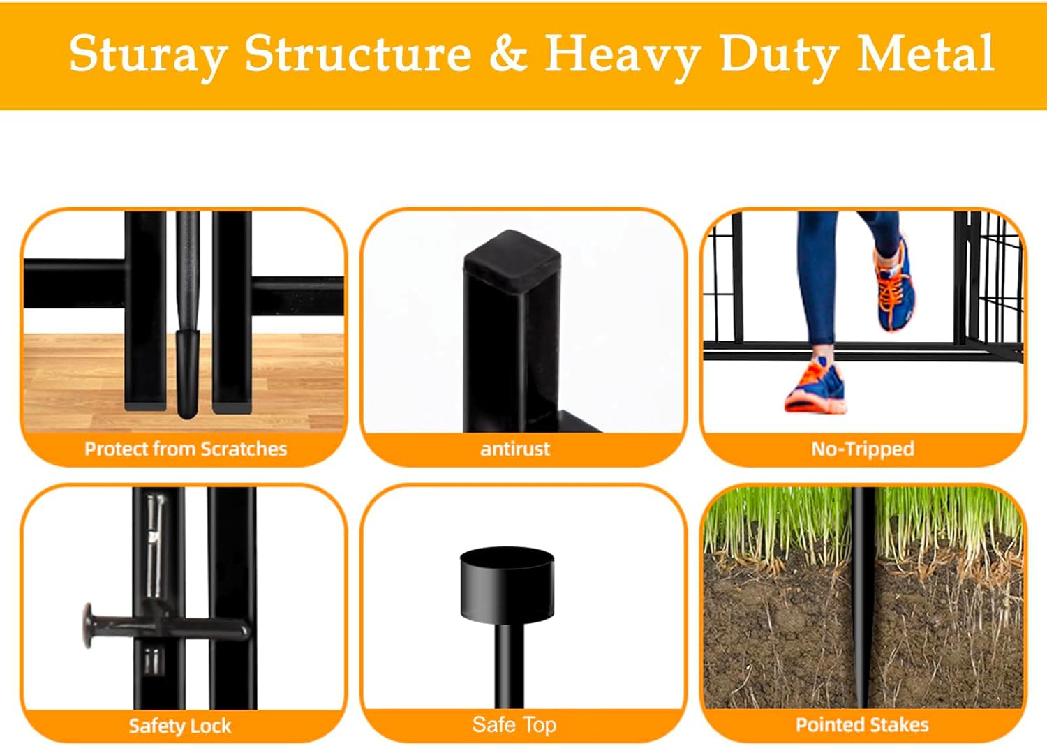 - Wide Application: This Metal Fence Is Suitable as A Garden, Lawns, Vegetable Garden Borders, and Path Edge Fences. It Can also be Used Indoors as Your Pet's Fence , and The Bottom of The Pole Is Fitted With An Anti-friction Sleeve That Won't Scratch Your Floors. Can also be Used as An Outdoor Pet Fence When You're Traveling or Camping