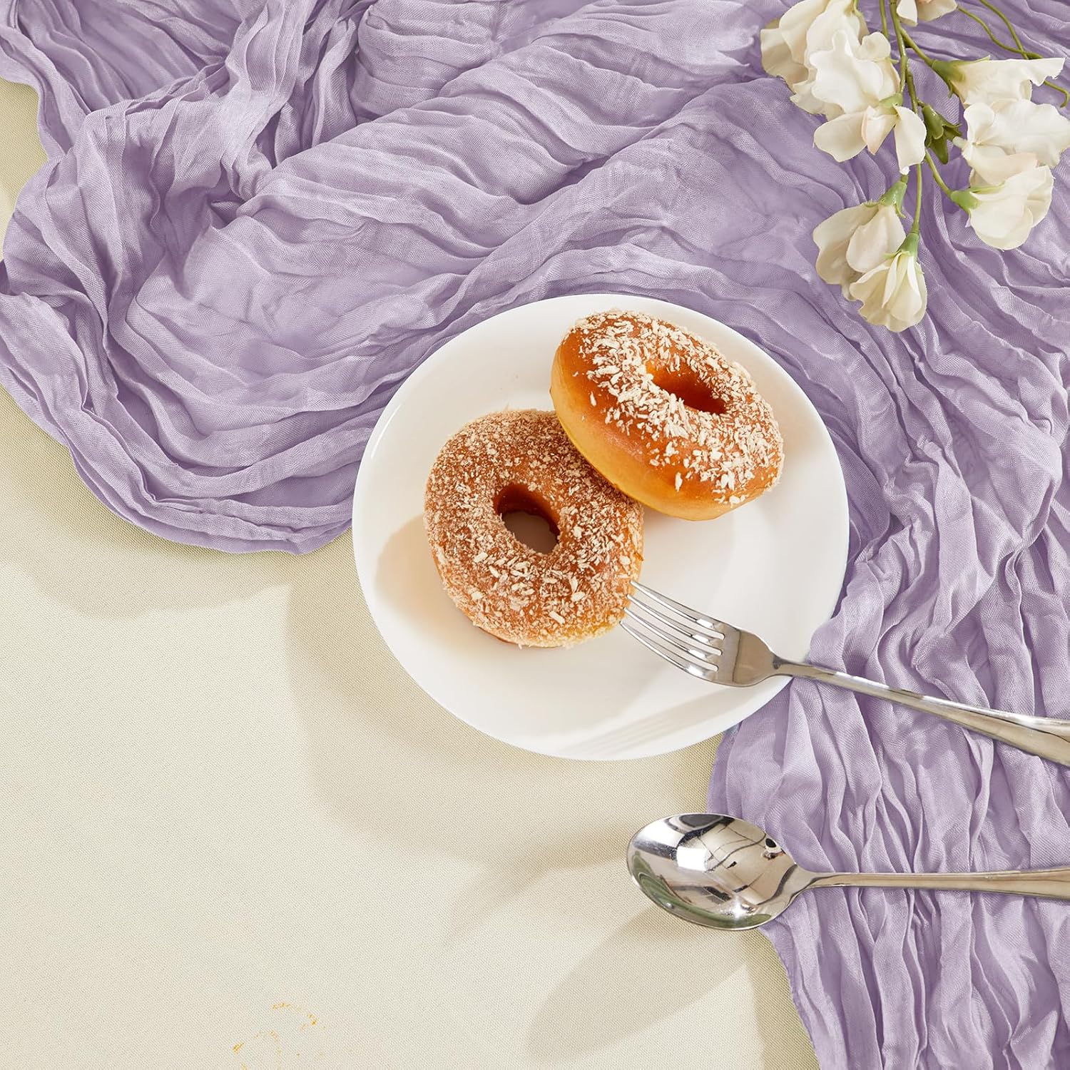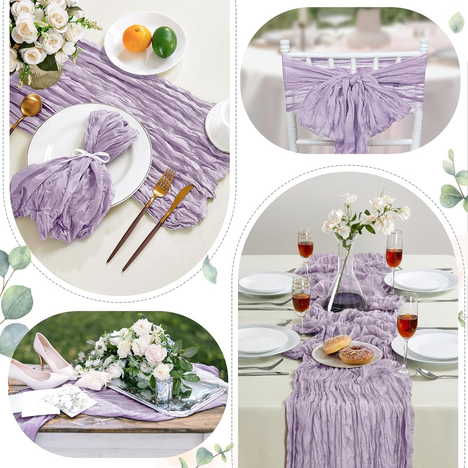 6 Pack Purple Cheesecloth Table Runner 10FT Long Boho Gauze Table Runner Rustic Sheer Runner for Wedding Bridal Baby Shower Birthday Party Table Decor Thanksgiving Christmas Decorations