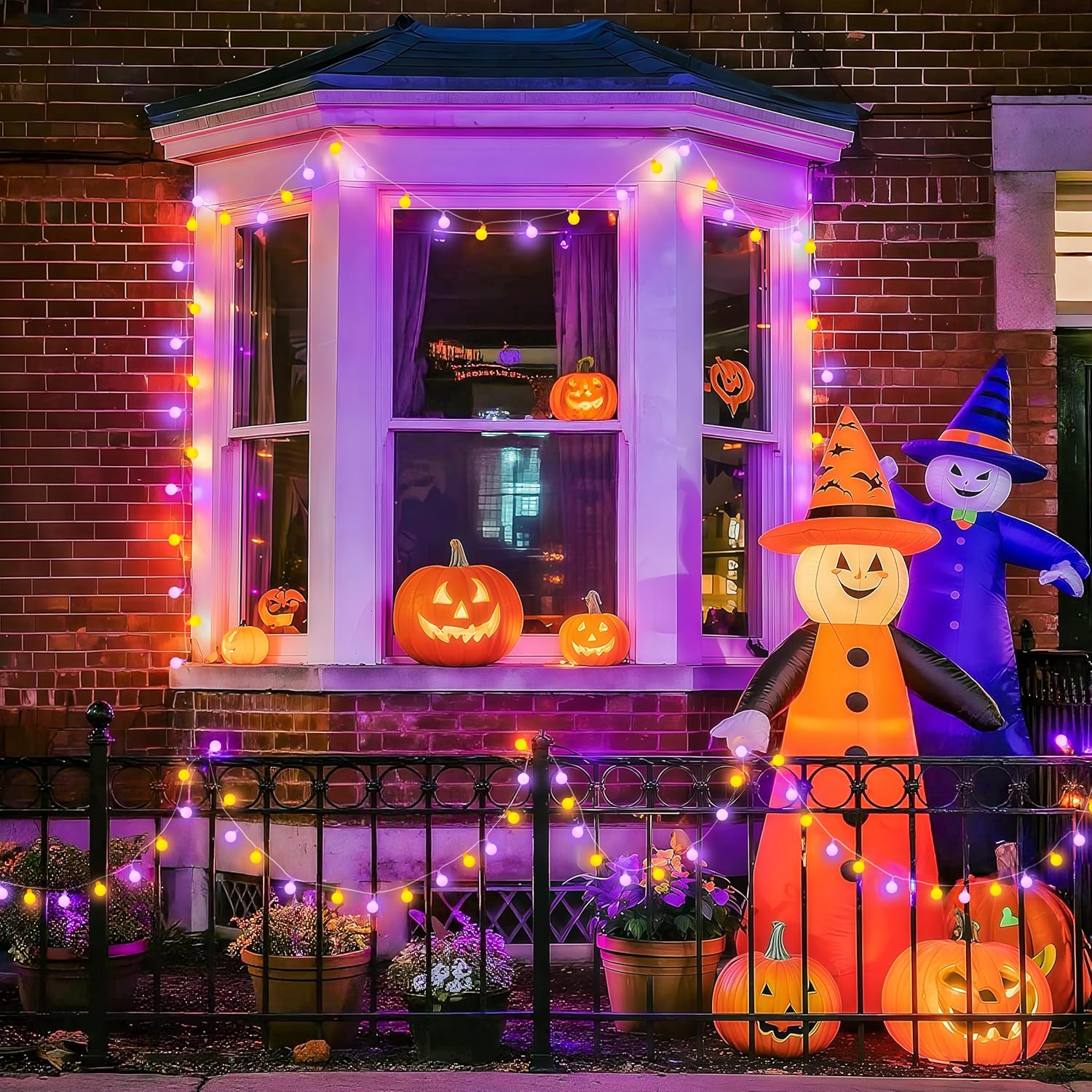 - 【Lovely Orange and Purple Halloween Lights】: The orange and purple string lights come with frosted globes can create a soft, cosy light to take care of your eyes. The lighting effect is irreplaceable by other LED Halloween string lights. Lovely orange and purple lights are waiting for you to show up and take it home. It’s a stunning Halloween decoration