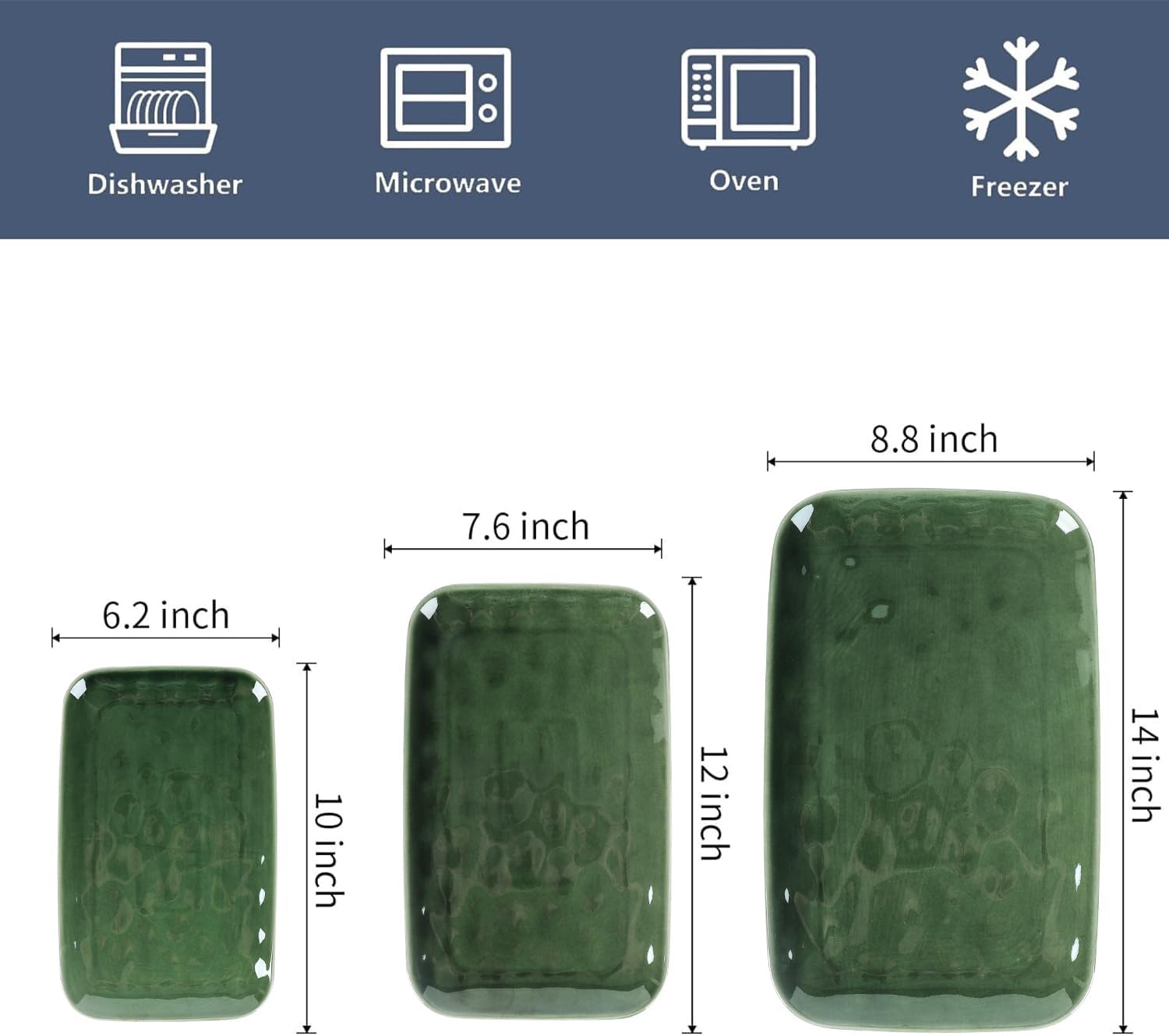 vicrays Ceramic Rectangle Serving Platters - 14" 12" 10" Porcelain Serving Trays Plates for Party BBQ Appetizers Sushi Dessert - Microwave Oven and Dishwasher Safe - Set of 3 Green