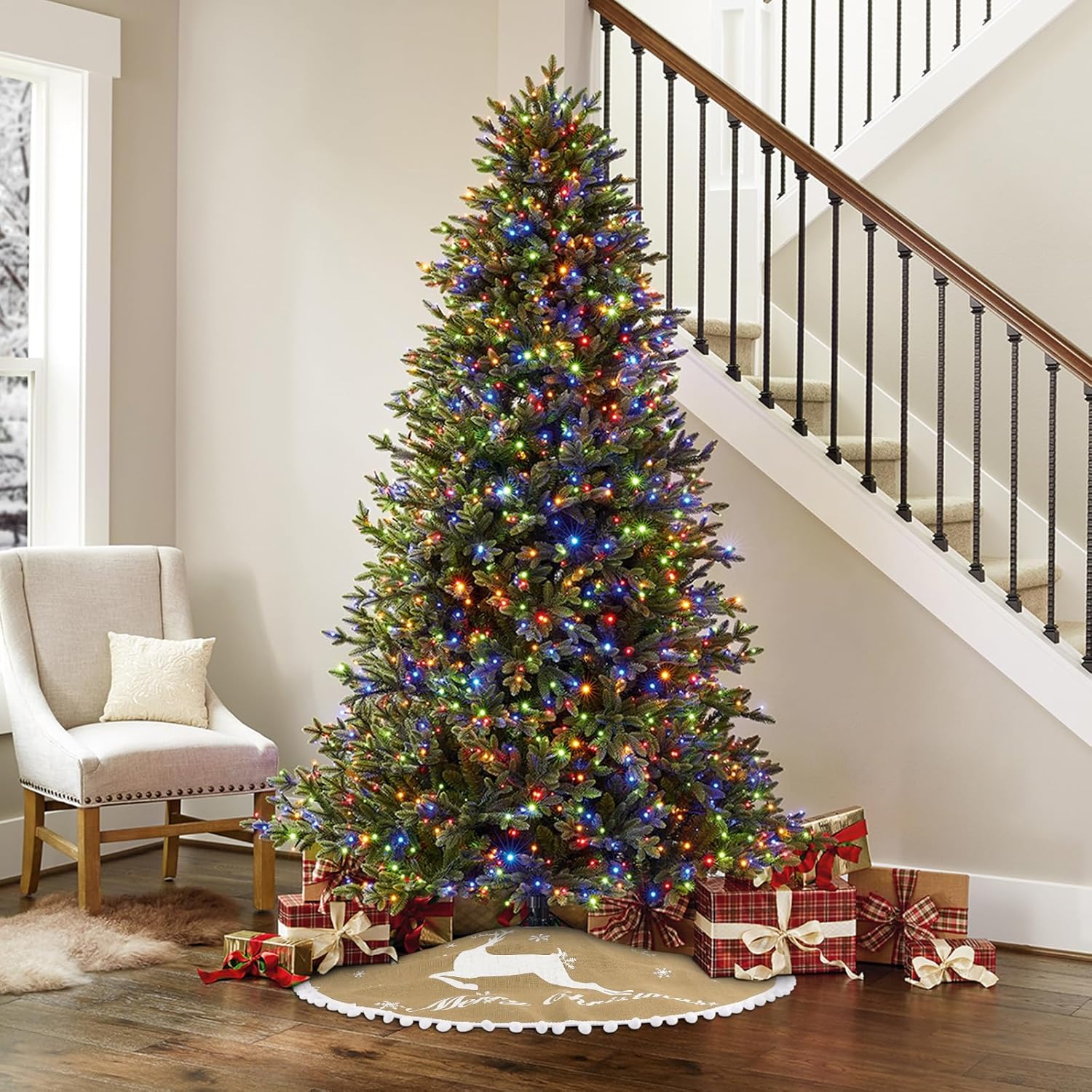 - Merry Christmas Tree Skirts:Our xmas tree skirt is printed with elk and various sizes of snow patterns, as well as the words "Merry Christmas." The edges are adorned with small, fluffy balls, adding a festive touch to your Christmas tree. This 48-inch tree skirt is perfectly sized for most Christmas trees perfectly. Before making a purchase, please measure the diameter of your tree to ensure a perfect fit