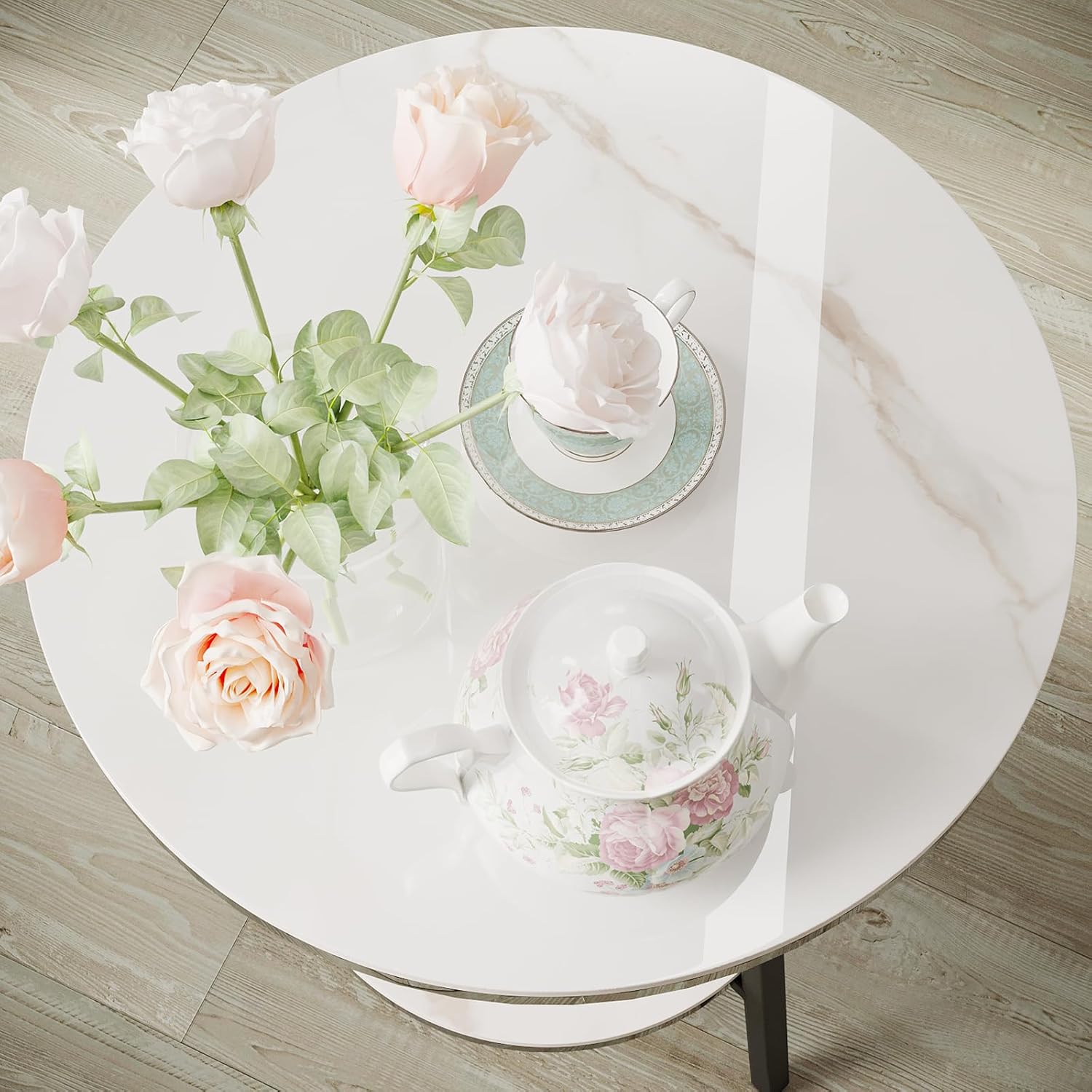 - Modern Elegance: Minimalist bedroom end table with 2 tier storage, With the high-gloss metallic edging tabletop, porcelain slab creating a sleek modern round table, minimalist aesthetic. Marble-look ideal as a contemporary for living rooms, blending seamlessly with modern, farmhouse, industrial, or mid-century decor.