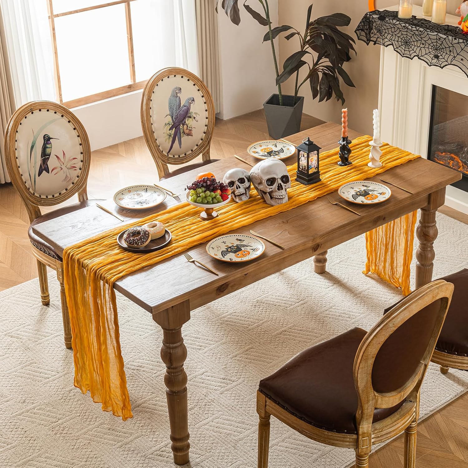 Sioloc Yellow Cheesecloth Table Runner Fall Autumn Decor for Home 10ft Table Cloth for Wedding Birthday Party Halloween Thanksgiving Decorations