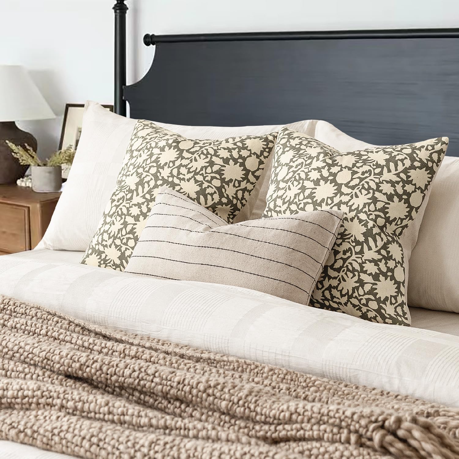 Foindtower Set of 2 Decorative Neutral Floral Throw Pillow Covers Accent Farmhouse Cushion Covers Boho Vintage Pillowcase for Couch Sofa Bedroom Living Room Home Decor Outdoor,20×20 Inch,Sage Green