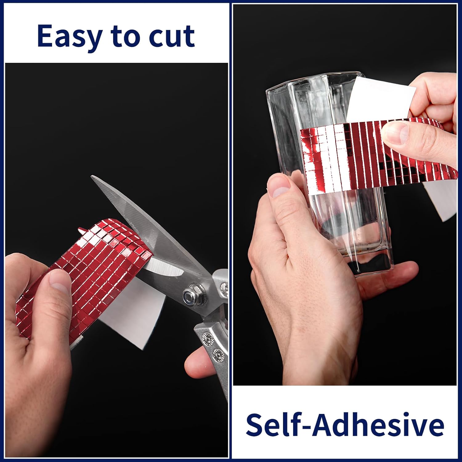 Art3dwallpanels 6 Pack Self Adhesive Glass Mirror Mosaic Disco Tiles Small Square Mirror Sticker for for DIY Disco Ball, Disco Cowboy Hat, Vase, Bottle, Interior Decoration, 2364 Pieces, Red