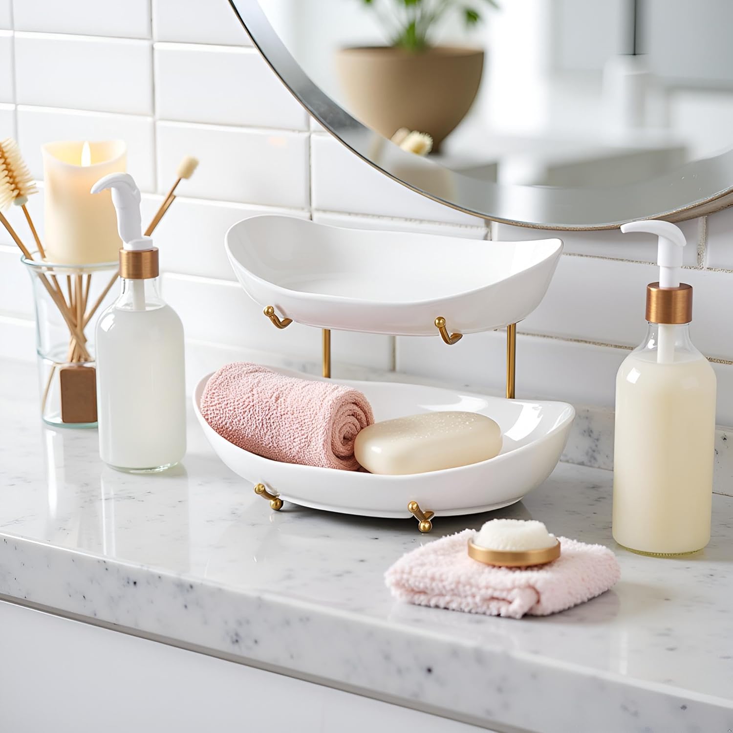 - 【Beyond a Fruit Bowl】: Beyond a fruit bowl for apples/bananas: Use in bathrooms for toiletries, serve desserts as serving trays for party, display snacks in living rooms, or create stunning tiered fruit platter during brunch.
