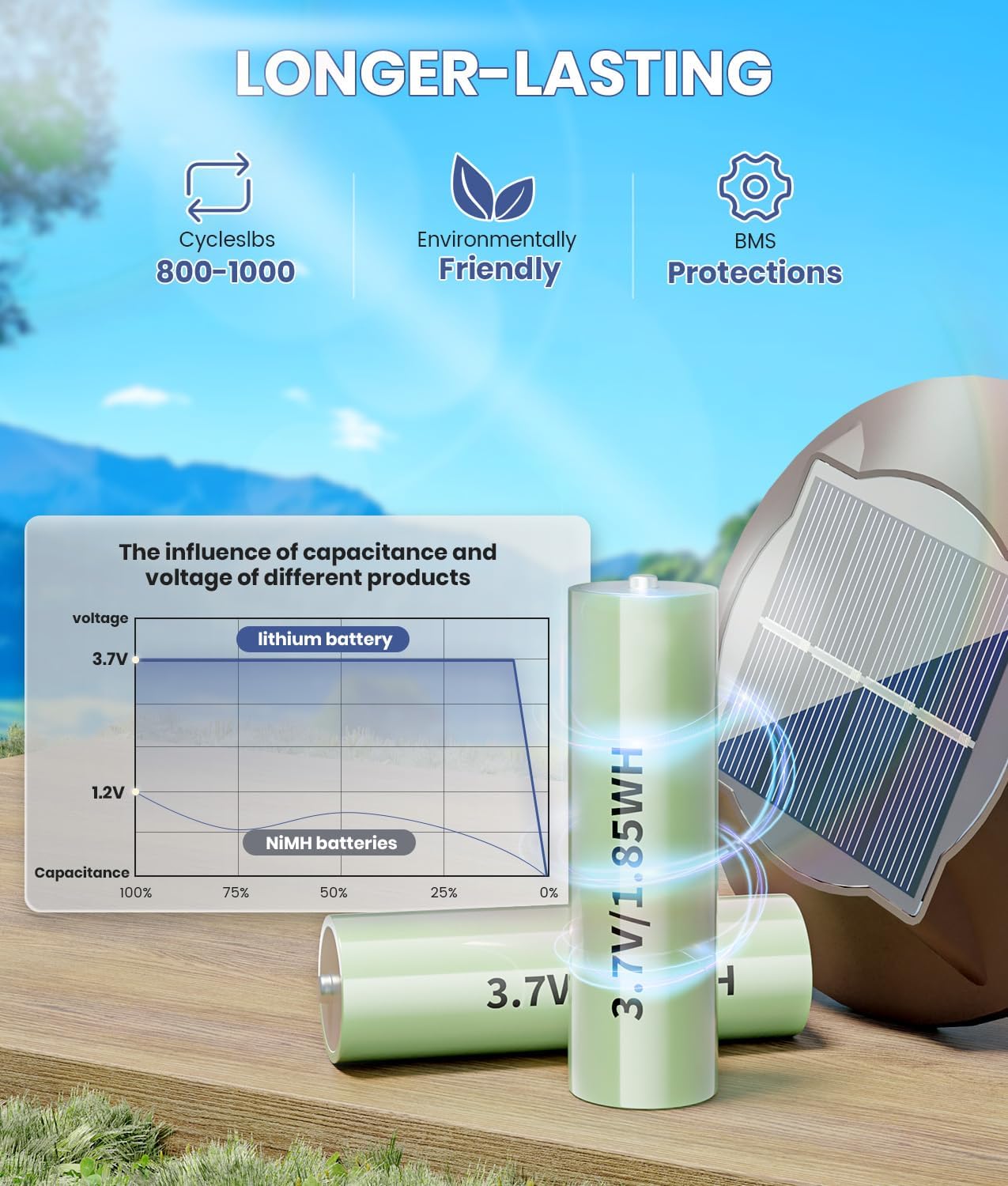 - [Ultra Long Lasting Battery&Auto On/Off] Unlike ordinary ni-mh batteries, we use more reliable and larger capacity Lithium-ion battery. The solar panels convert sunlight into electricity and store it in the battery during the day, and the solar lights automatically illuminate at night. NEWMESSI upgraded solar landscape lights only need to be exposed to sunlight for 6-8 hours to provide up to 12-16 hours of bright lighting time.