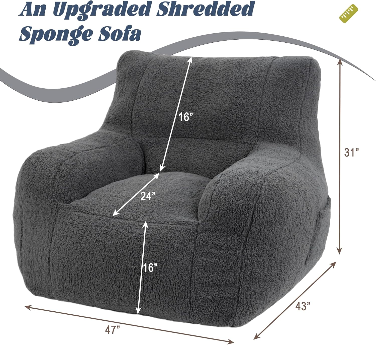 - Product Details:Measuring 47” x 43” x 31”;allow the bean bag to sit for 48 hours after unpacking to regain its full form;This lambswool adult been bag sofa is designed for a comfortable experience