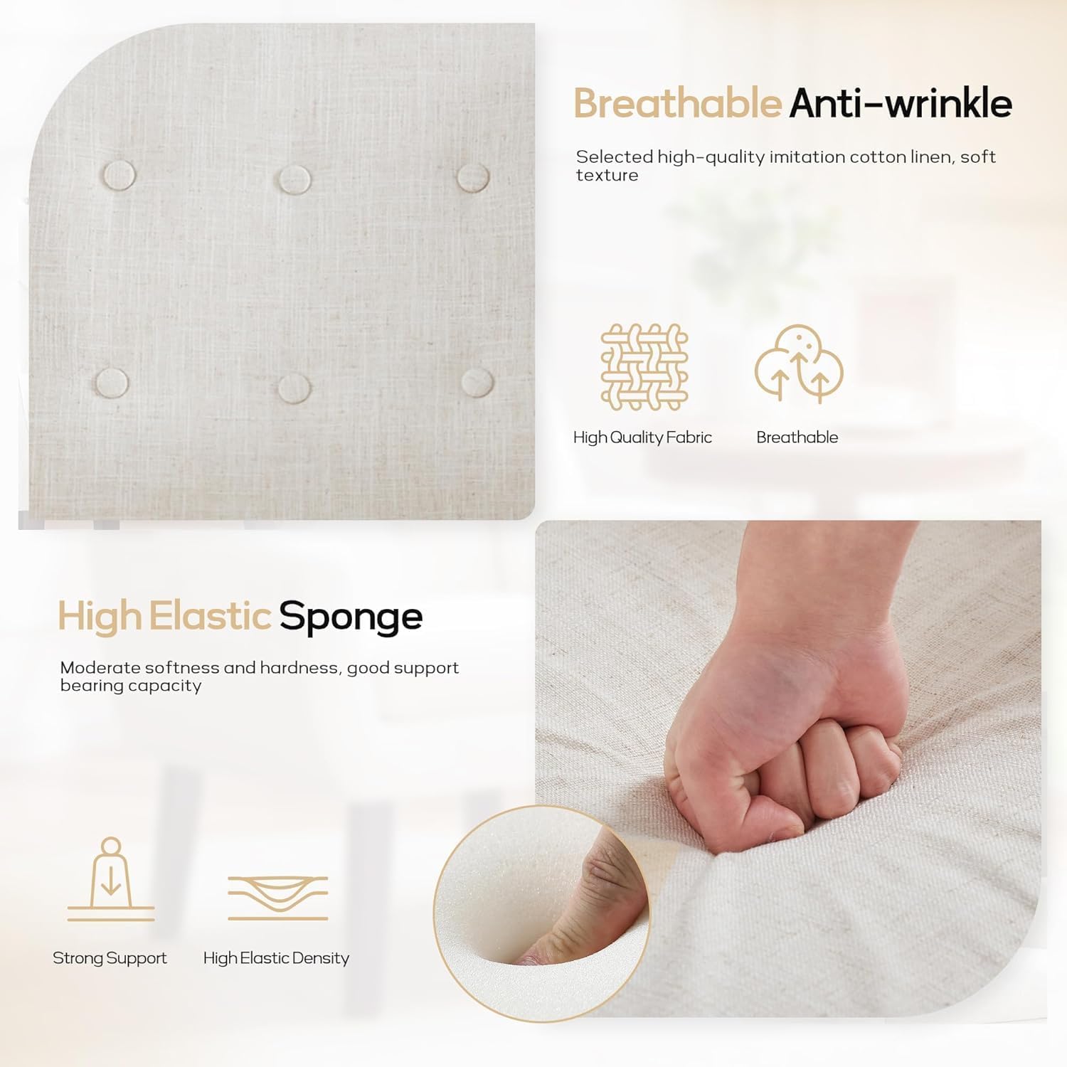 HUIMO Accent Chairs Set of 4, Upholstered Button Tufted Armchair, Linen Fabric Sofa Chairs for Bedroom, Living Room, Mid Century Modern Comfy Reading Chair (4, Beige)