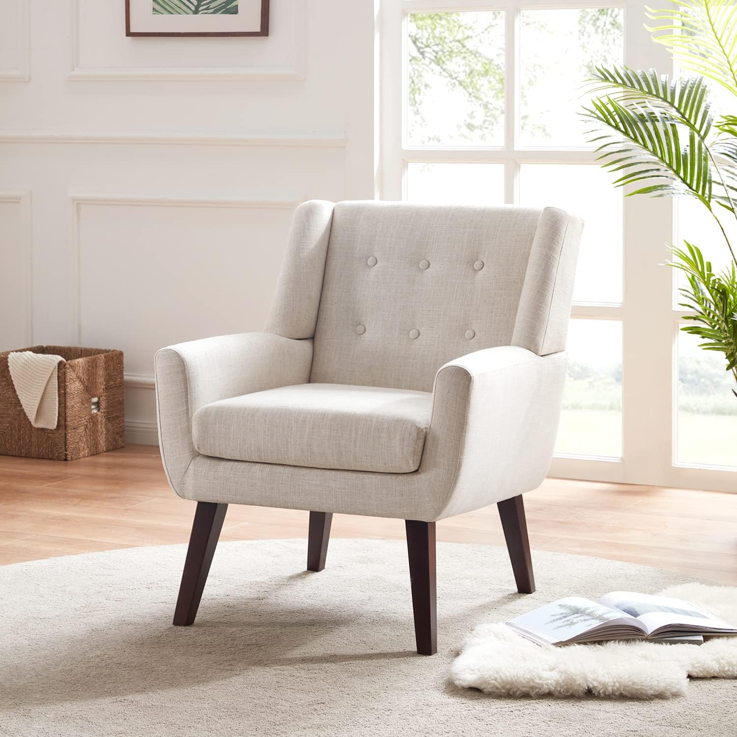 - Gorgeous Furniture Addition: This living room chair comes in handy when you require a piece of functional and stylish furniture. The linen fabric covering adds a touch of texture to the couch chair and the concise back and integrated arms complete its contemporary-traditional look