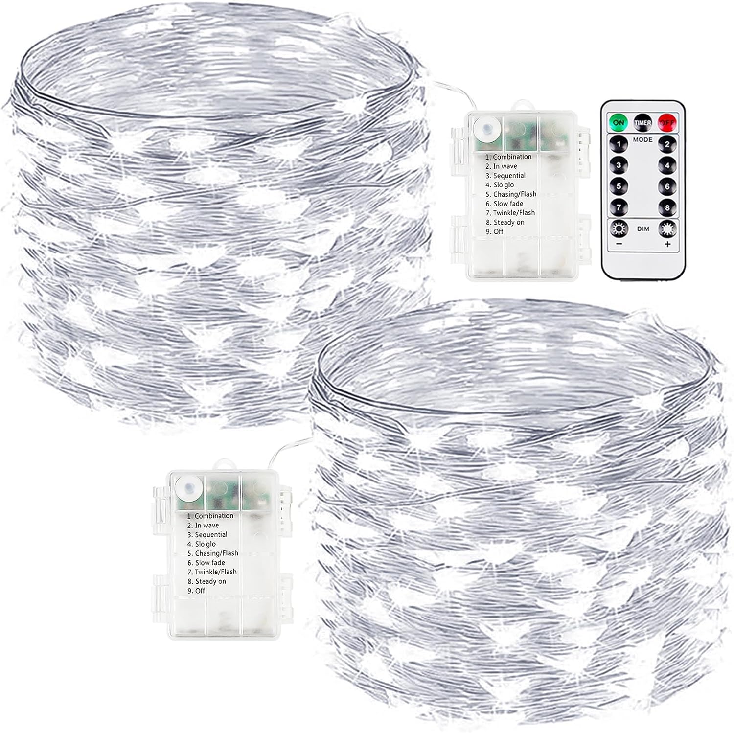 - Upgraded Christmas twinkle lights: Designed with ultra-bright LEDs and durable silver wire, these battery fairy lights are built to last and make an excellent choice for decorating bedrooms, centerpieces, balconies, and porches. Each set includes 2 strands of lights and 1 remotes, each 33ft long with 100 LEDs, powered by 3 AA batteries (not included)