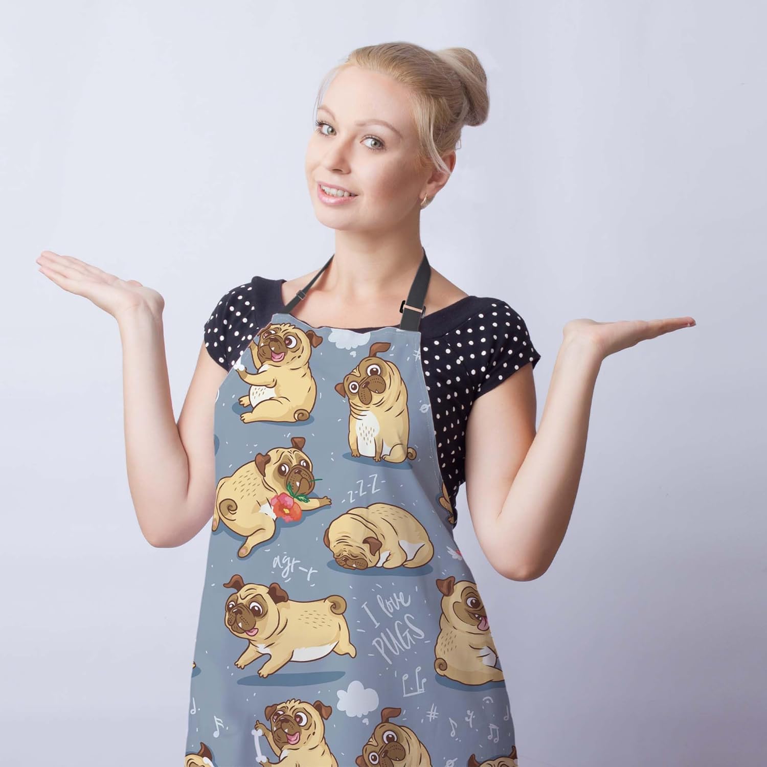 Paint Apron for Men Pug Puppies Dog Cartoon Bull Terrier Funny Aprons for Women for Kitchen Cooking Restaurant BBQ Painting Crafting Gardening 27” (W) x 31” (H), Waterproof Aprons