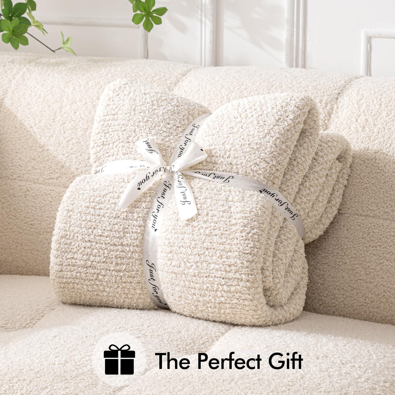 - 【Exquisite Blanket】Our blankets are wrapped with bow ribbon. Fluffy fiber and two-color stitching, simple yet exquisitely. This soft blanket is a chic decor for your home and a great choice for giving friends, colleagues and family on birthdays, Christmas, Valentine's Day, and Thanksgiving.