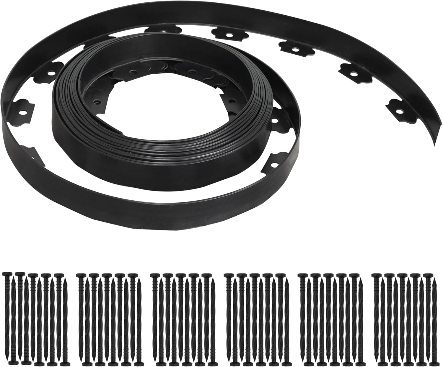 - Dimension - Each landscape edging height is 1.5 inch and 60 ft length. Comes with 1 pack. The spiral spike is 6 inches height. Great for flower beds, pathways, tree rings and garden.
