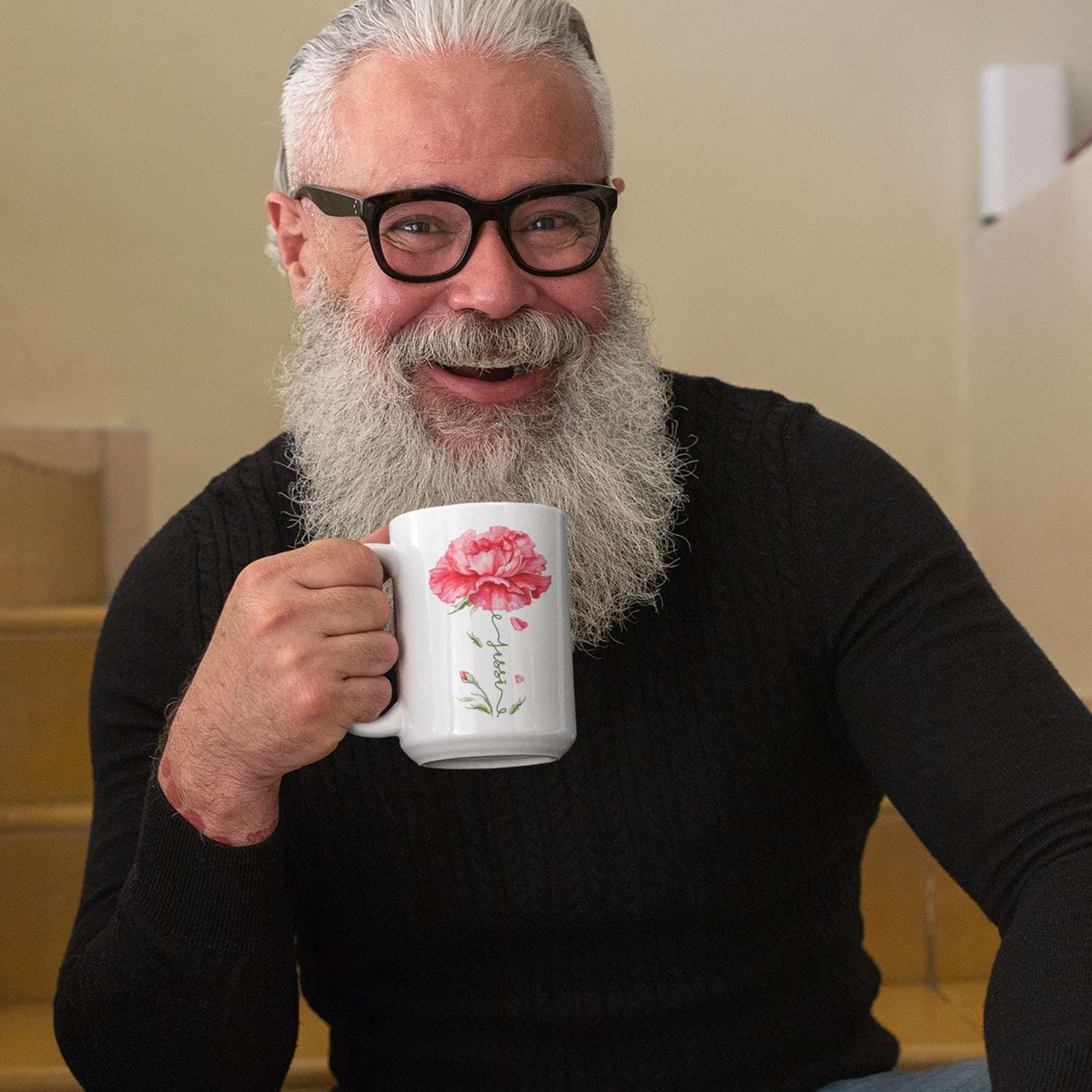 Personalized Floral Carnation Mug, Customized Name On Flower Coffee Cup, Unique Ceramic Tea Mug 11oz Or 15oz, Custom Carnation Flower Accent Cup, Gift For Daughter Mother