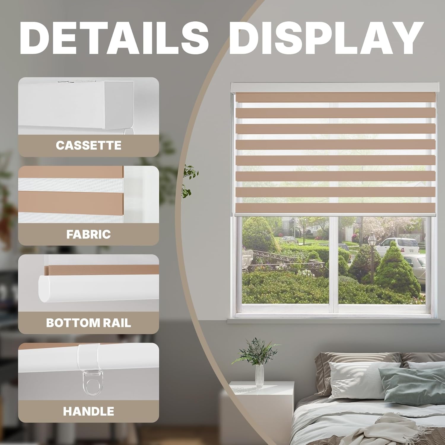 - 【Various Room Styles】Crafted from premium voile and polyester, this double-layer roller blinds for indoor windows adjusts light effortlessly. Fit for any room: block out light in bedrooms and nurseries for restful sleep, or filter light in living rooms, kitchens, and studies for a cozy atmosphere.
