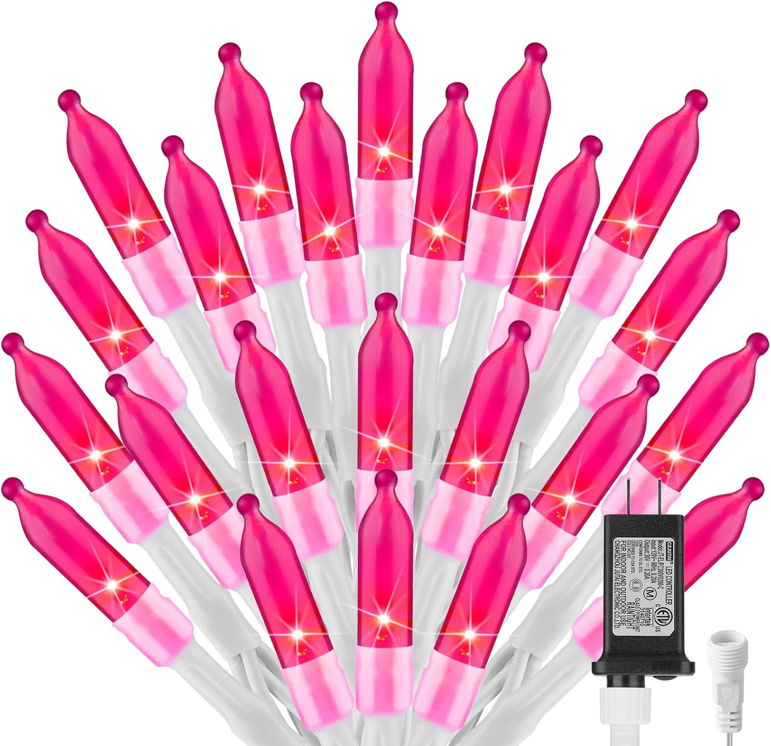 Pink Christmas Mini Lights, 39Feet 100 LED Pink String Light with 8 Lighting Modes, Connectable Valentine's Lights for Indoor Outdoor Valentine's Day Garland Wreath Holiday Decoration, White Wire