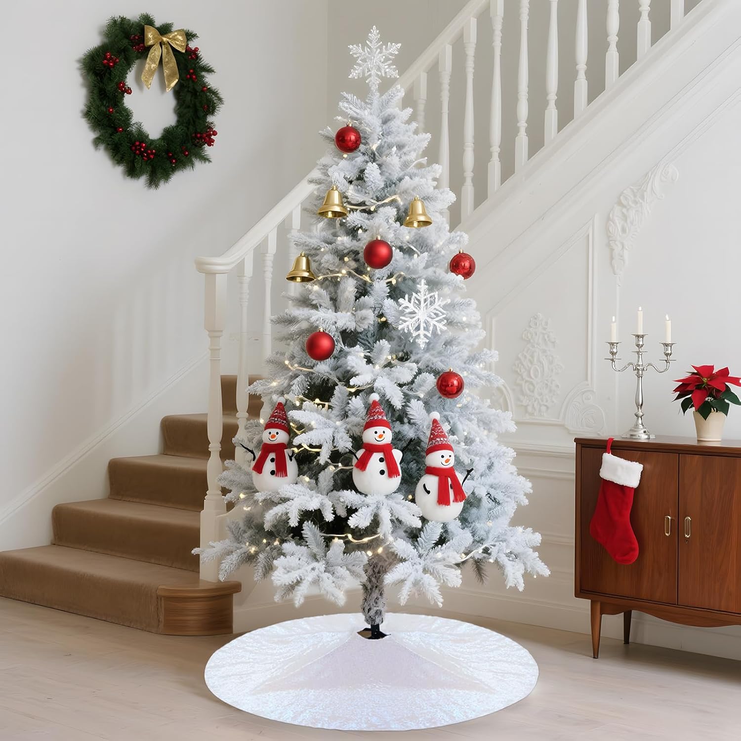 Eternal Beauty Christmas Tree Skirt, 24 Inch White Iridescent Sequin Tree Skirt Small Xmas Tree Skirt for Christmas Tree Decorations