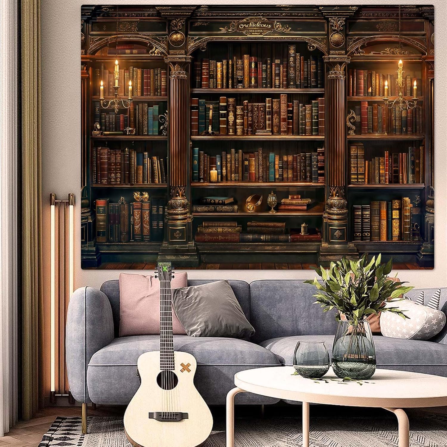 - High-Quality Material: Made from durable polyester fabric, this bookshelf wall tapestry is soft, lightweight, and easy to care for, ensuring long-lasting use and vivid colors