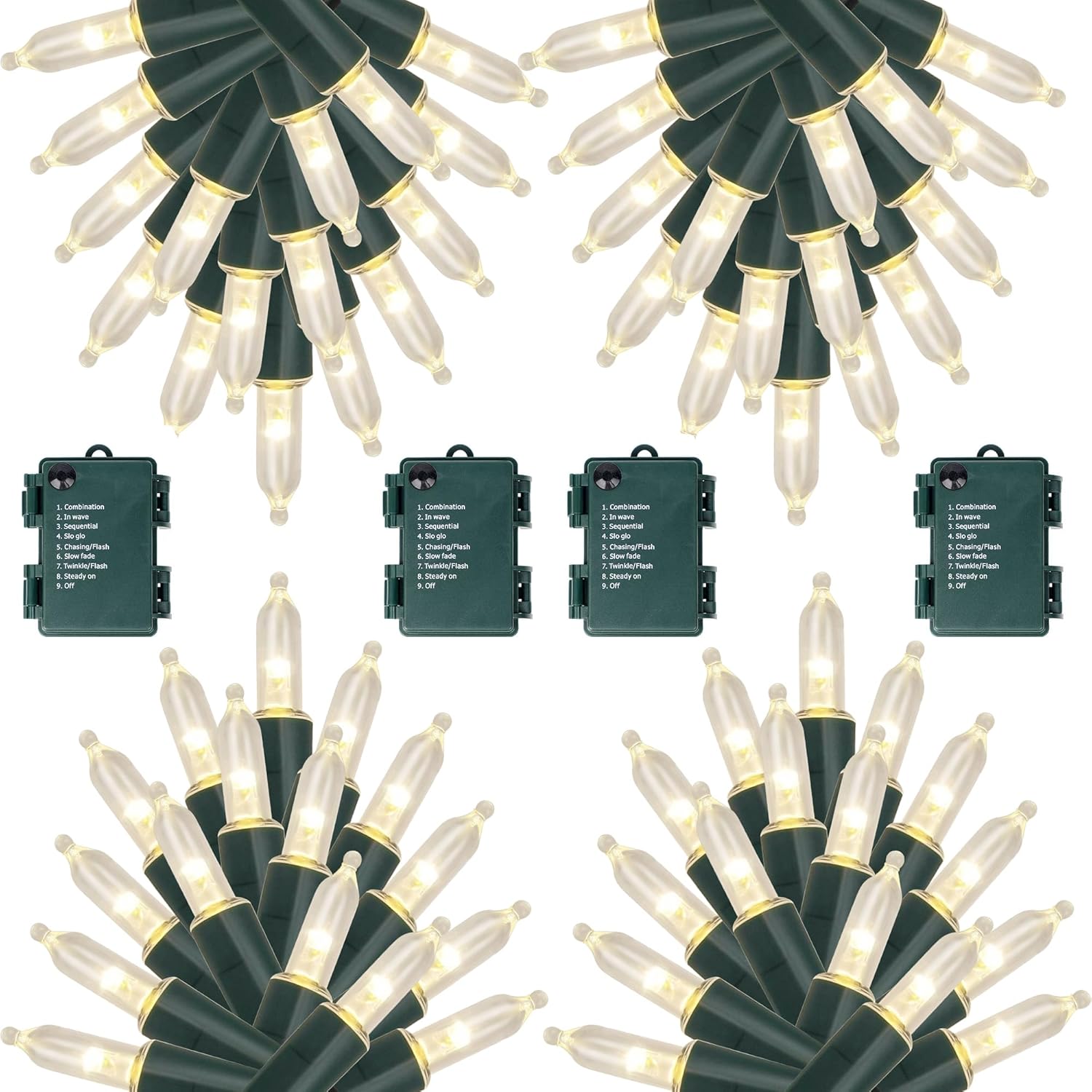 Joliyoou 4 Packs Total 200 LEDs 64ft Warm White Christmas String Lights, Battery Operated Christmas Mini String Lights with 8 Lighting Modes, Indoor Outdoor LED Xmas Fairy String Lights with Timer