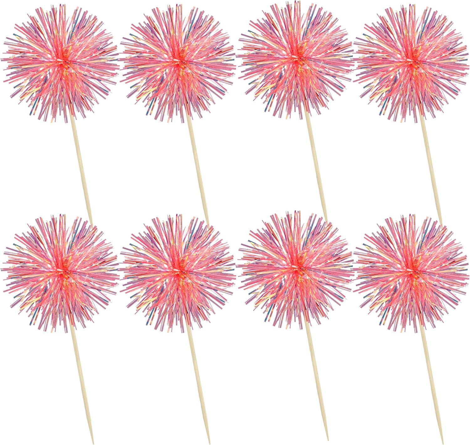 Ephlyn 30Pcs Foil Firework Cupcake Toppers Sparkle Tinsel Cupcake Picks Happy Birthday Cake Decorations Drink Stirrers Cocktail Food Fruit Toothpicks for Baby Shower Graduation Party Supplies Orange