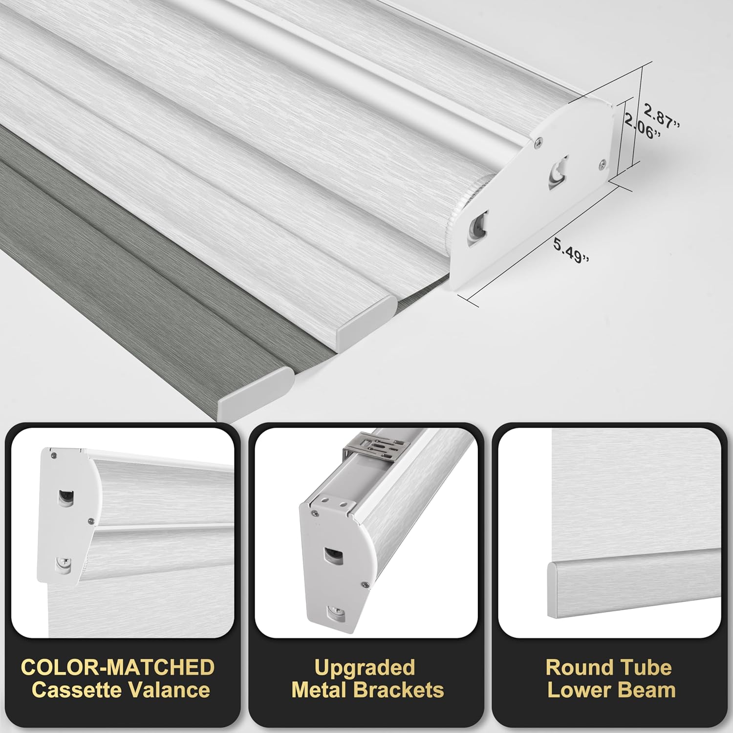 - FREE STOP CORDLESS SYSTEMïŒThe cordless double roller shade prioritizes safety with a cordless design designed for families with small children or pets.You just need to pull down or push up to stop at any position you want. COLOR-MATCHED CASSETTE VALANCEïŒThe hidden installation of the cordless roller blinds can effectively reduce installation gaps, reduce light leakage.The color of the cassette valance is same as the fabric color,making the day night blinds more beautiful after installation.