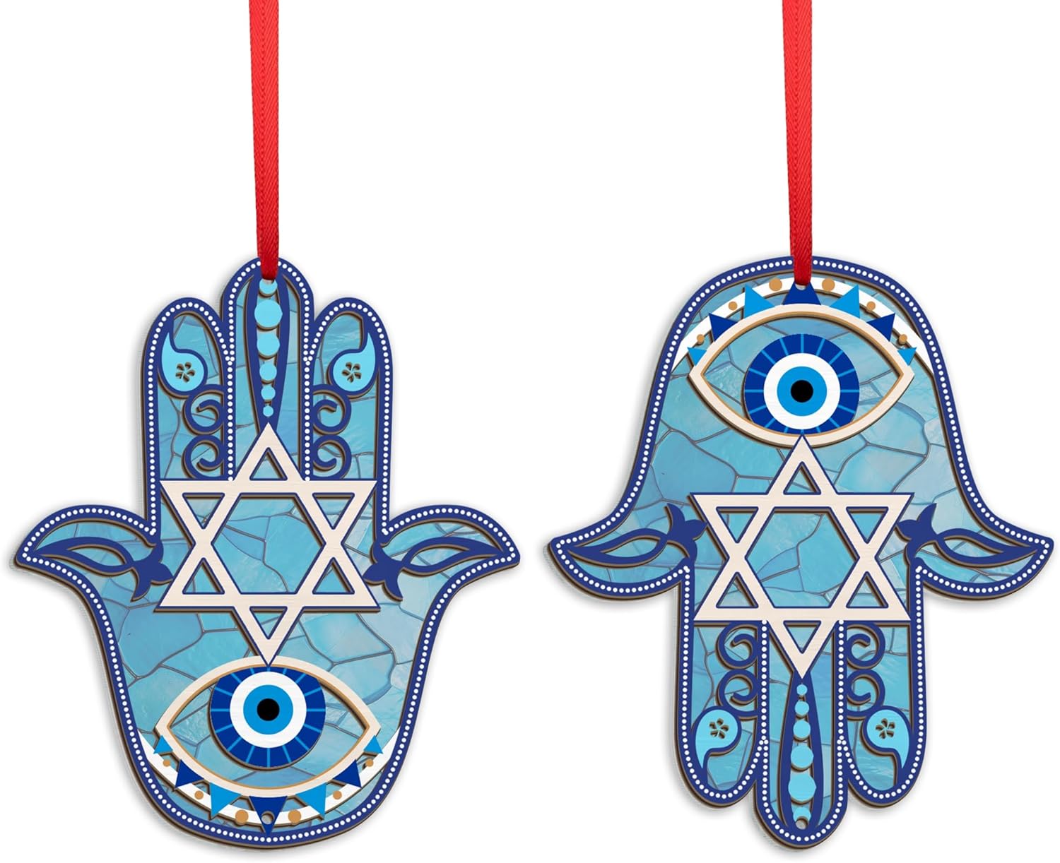 - APTIVATING LIGHT & COLOR - Illuminate your space with our suncatcher Christmas ornaments. Our single ornament features two unique hanging designs, not a pack of two, but you can choose between two beautiful sides to cast a radiant light display: one featuring a Star of David for blessing and the other showcasing protection against Evil Eyes.