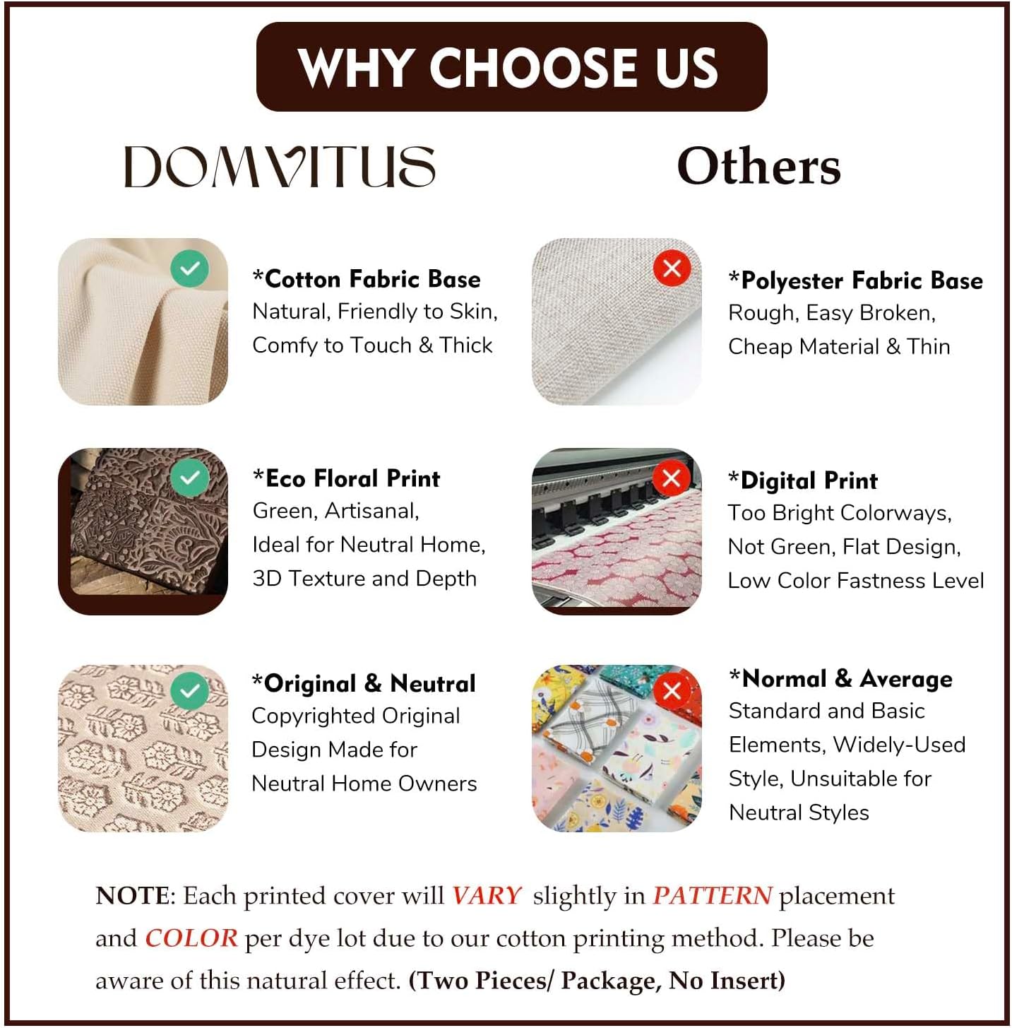 DOMVITUS Floral Pillow Covers Set of 2, Throw Pillow Covers 20x20, Floral Print Neutral Accent Decorative Pillow Covers for Living Room, Bed, Cloud Cream
