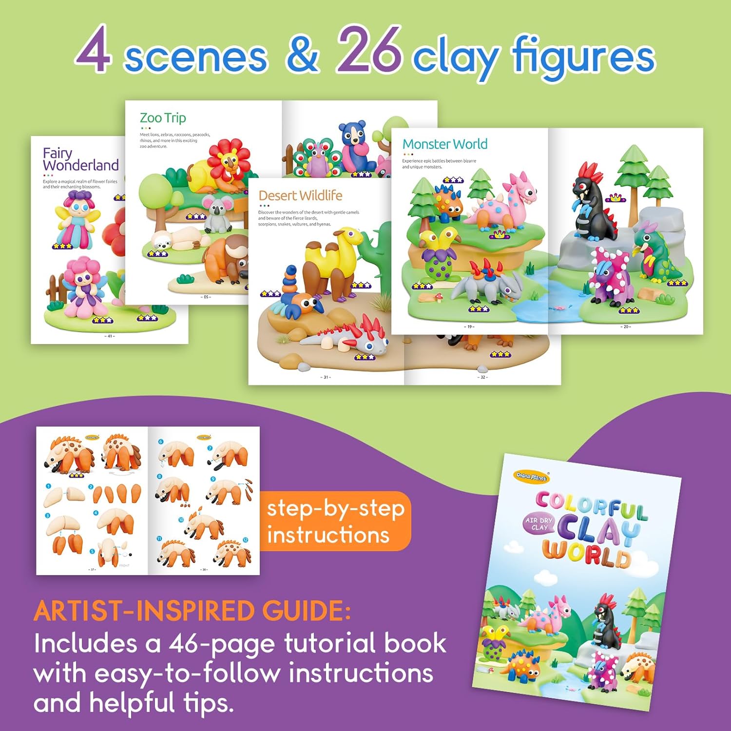 - Expertly Designed Guide: Explore 4 themes with step-by-step tutorials for 26 unique clay figures, all designed by clay artists. These guides cater to various skill levels, offering an enjoyable challenge for every young artist.