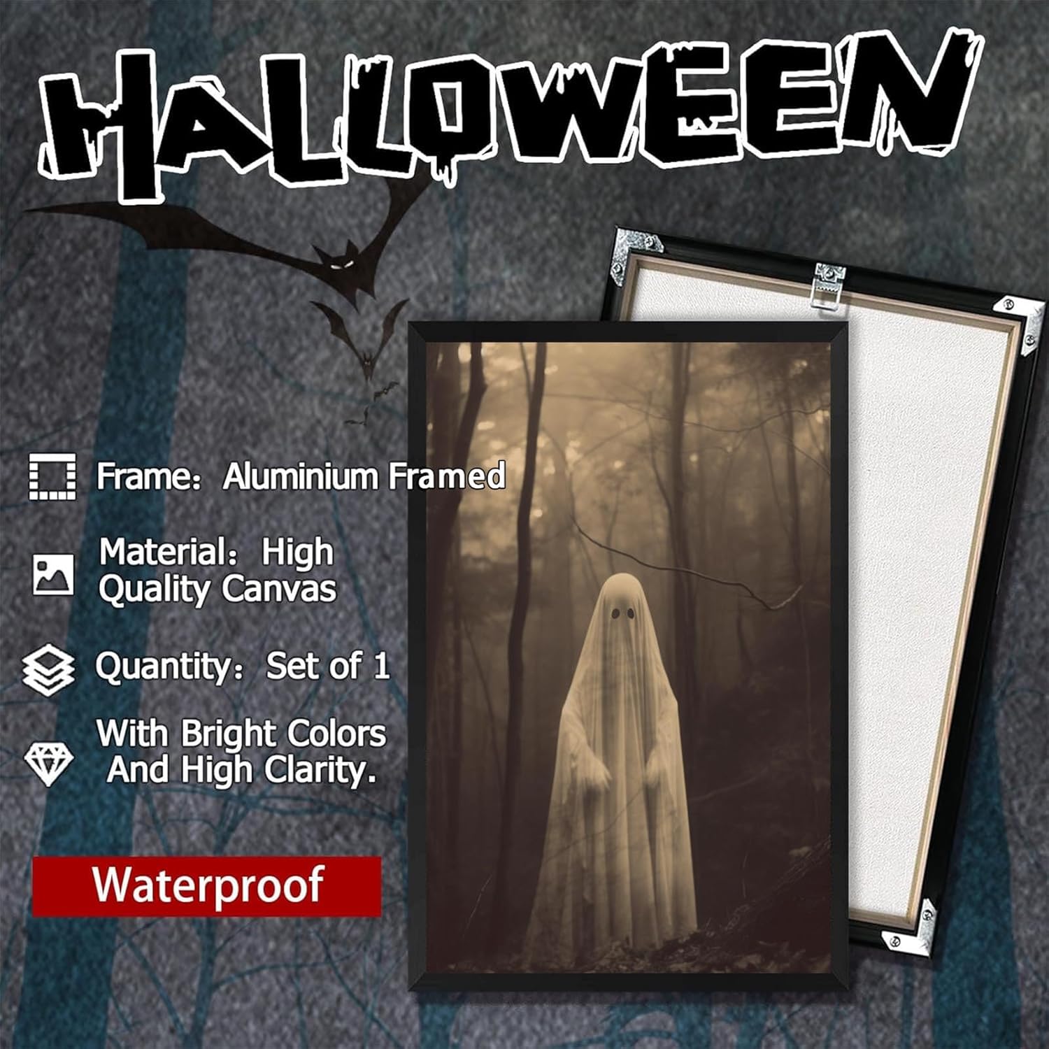 Ghost Forest Spooky Print Poster The Gothic Room Decor Creepy Picture Posters Dark Academia Aesthetic Family Prints Canvas Wall Art Home Apartment Decorations 24X36inch Aluminum Framed