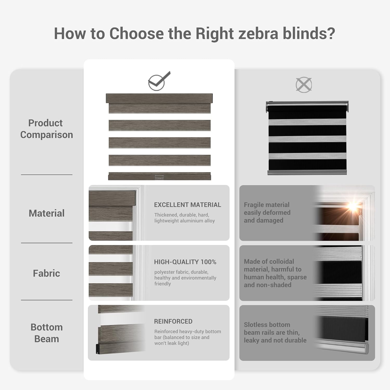 Cordless Zebra Blinds for Windows, Blackout Interior Blinds,Easy to Install,UV Protection,for Offices and Home,Custom Roller Shades, Mousse Dark Bown,70" W x 56" H
